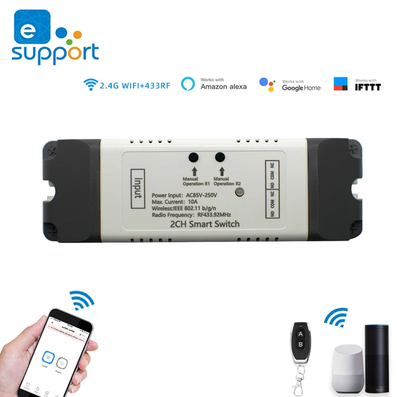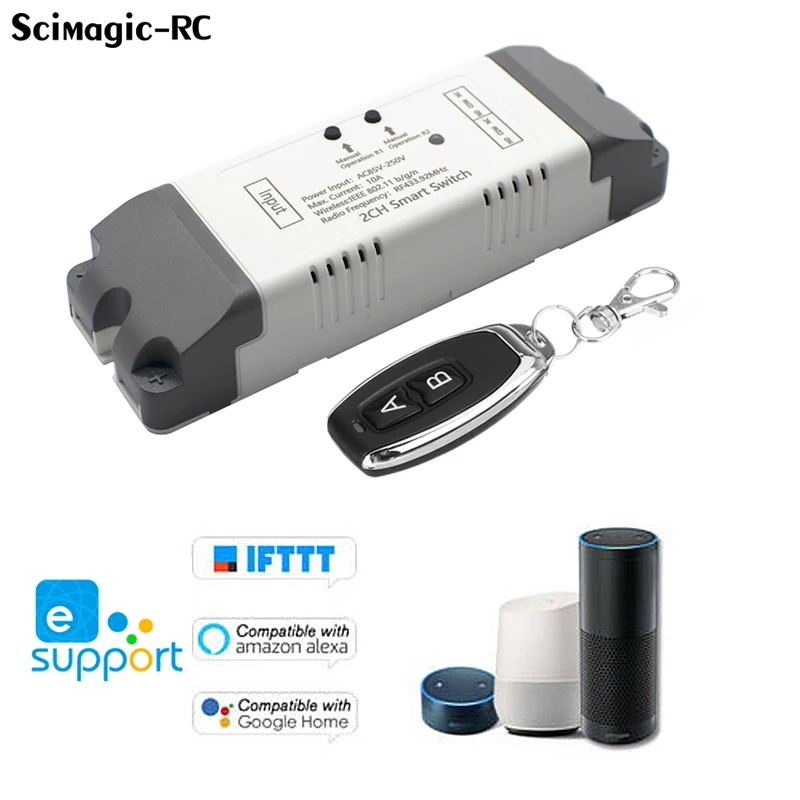Поддержка Google Home Совместимость eWeLink Wi-Fi, 2 канала реле умный Модуль Автоматизации 220 вольтным и переключатель