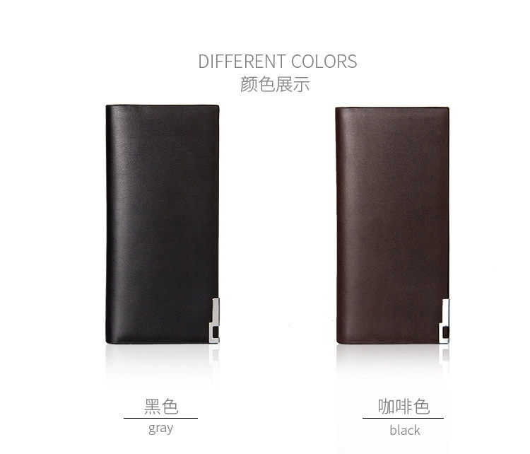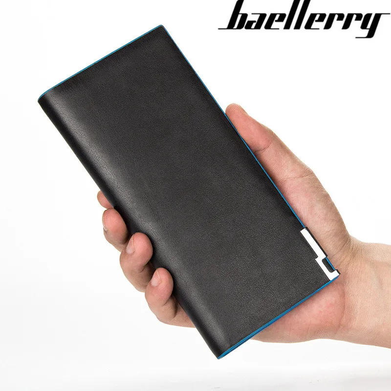 Baellerry Для мужчин Новый Простой ультра тонкий длинный кошелек Мульти карта открыть из искусственной кожи; Кожаная обувь в Корейском стиле; Однотонная бумажник с металльном краем твердые сумки из натуральной кожи