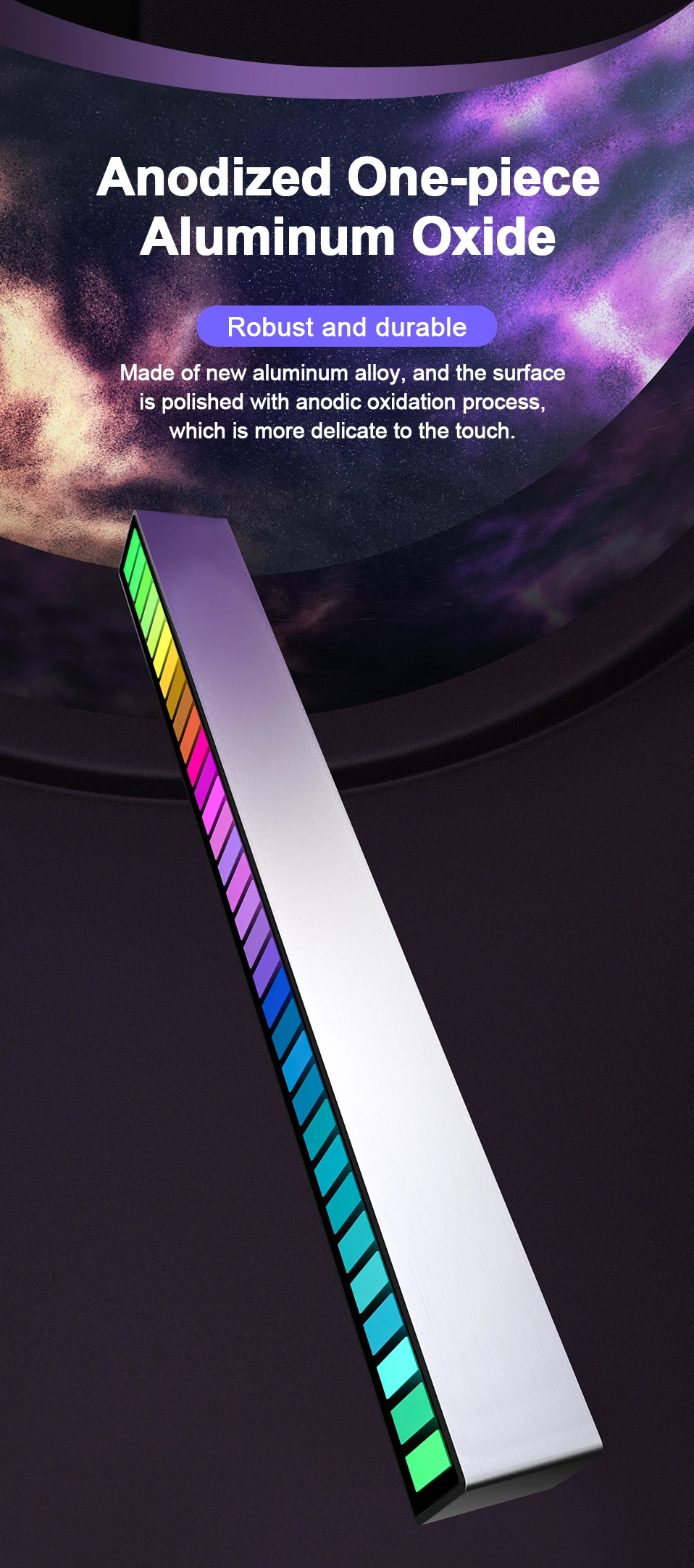 【Визуализация вашей любимой музыки】с 32 цветными светодиодными лампами, высокочувствительным микрофоном и функцией шумоподавления, индикатор аудиоспектра EPIKOS RBG обеспечивает 8 режимов отображения, 4 уровня яркости и 5 уровней скорости. Вы можете просто настроить его так, чтобы достичь желаемого динамического выражения для выбранной Вами музыки.【Художественный дизайн и Премиум Качество 】 индикаторная планка покрыта алюминиевым сплавом одноразовый формовочный чехол. Просто, но крепко. Отличный подарок для меломанов, дизайнеров и маркетологов.【Расслабляющий и вдохновляющий 】 вы можете разместить его на рабочем столе, прикроватной тумбочке или в машине, чтобы создать расслабляющую и вдохновляющую атмосферу. Активируя окружающую среду, она поможет снять давление и запустить вашу идею.[Оповещение об оповещении] весь экран дисплея покрыт слоем защитной пленки. Вы видите царапины на пленке. Пожалуйста, удалите весь слой защитной пленки перед использованием световой пансветильник уровня музыки. Надеюсь, вы насладитесь волшебным моментом с индикатором аудиоспектра EPIKOS RBG.