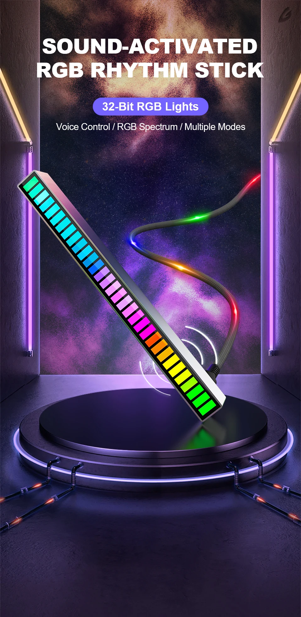Музыкальная палочка с голосовой активацией, 32-битная, RGB-подсветка