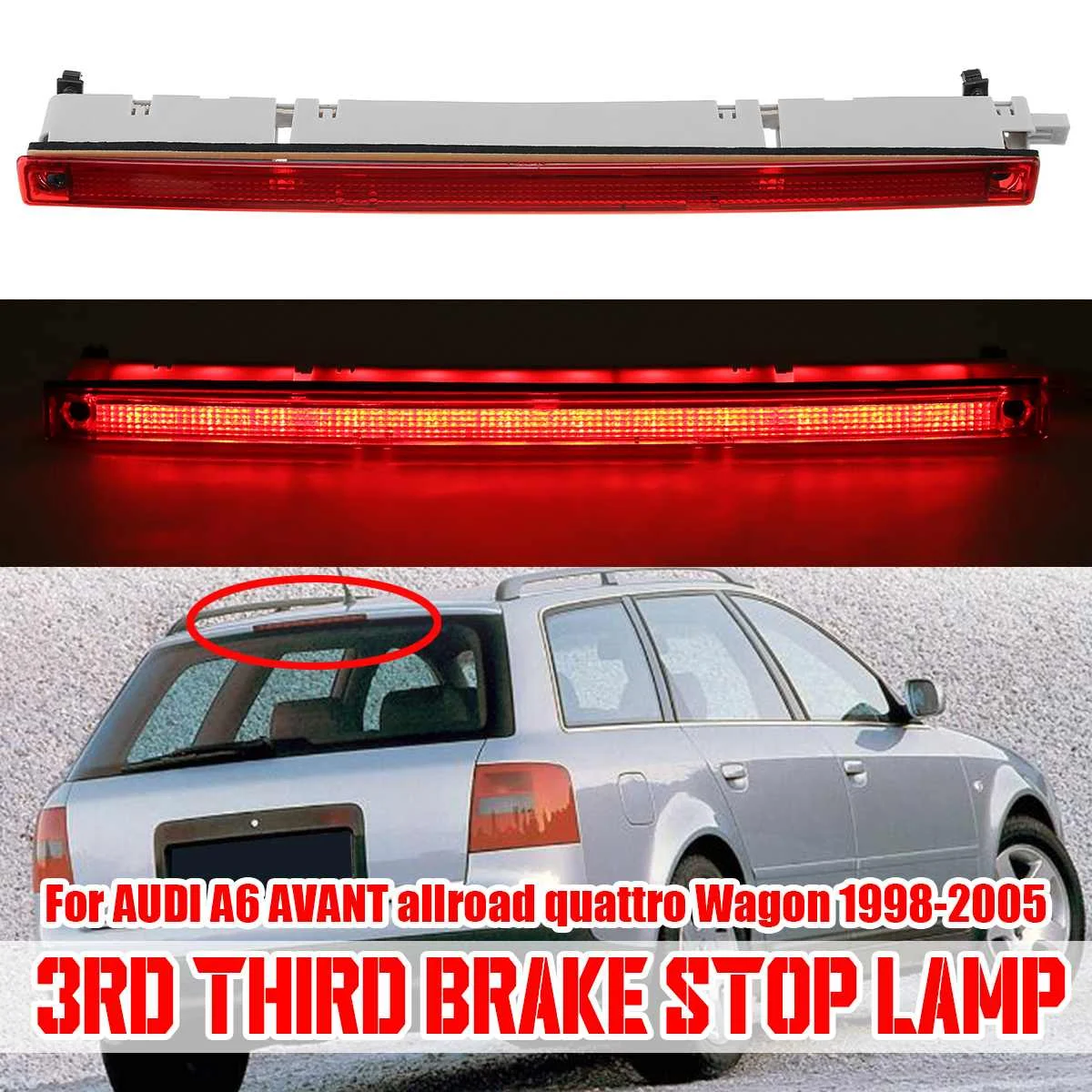 Третий тормозной Стоп-сигнал для AUDI A6 AVANT allroad quattro Wagon 1998-2005Посылка входит:1 x третий тормозной Стоп-сигналКомплектация:Для AUDI A6 AVANT allroad quattro универсал 1998-2005Спецификация:-Тип: 3-я третья Тормозная Стоп-лампа-Материал: пластик-Цвет: красный-Размещение на транспортном средстве: сзади-Тип крепления: прямая замена-Номер детали производителя: 4B9945097A 4B9 945 097 A-Номер сменной детали: S6 RS6 4B 4B2 4B4 4B5 4B6Особенность:-Предотвращение ночных столкновений заднего угла.-Отсутствие загрязнений, шума и электронных помех.-Защита от высокого и низкого напряжения.-Защита от обратной полярности.-Водо-и ударопрочный.-Высокая эффективность и энергосбережение.-Изготовлен из высококачественных супер ярких светодиодный ных ламп красного цвета.Примечание:-Возможны отклонения на 1-3 мм вследствие измерений вручную.-Пожалуйста, проверьте наши фотографии и убедитесь, что показанная деталь выглядит идентично вашей на складе.