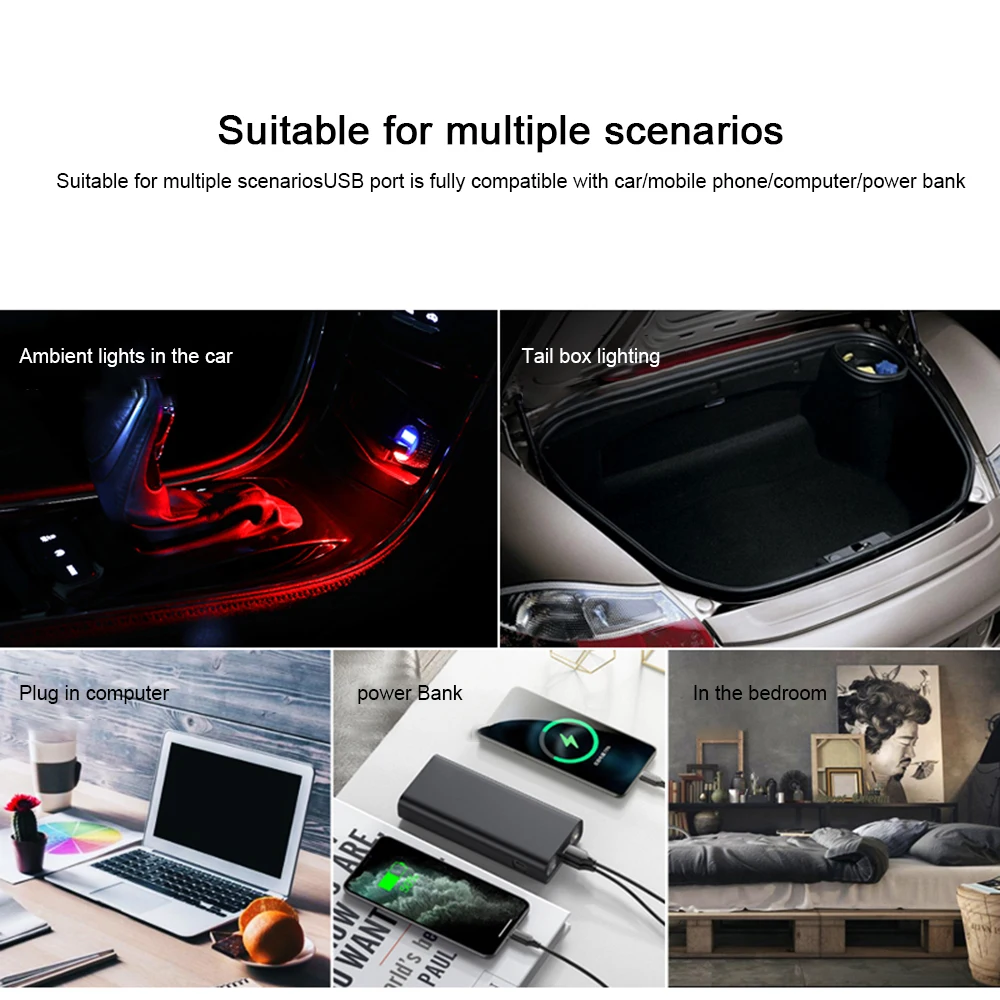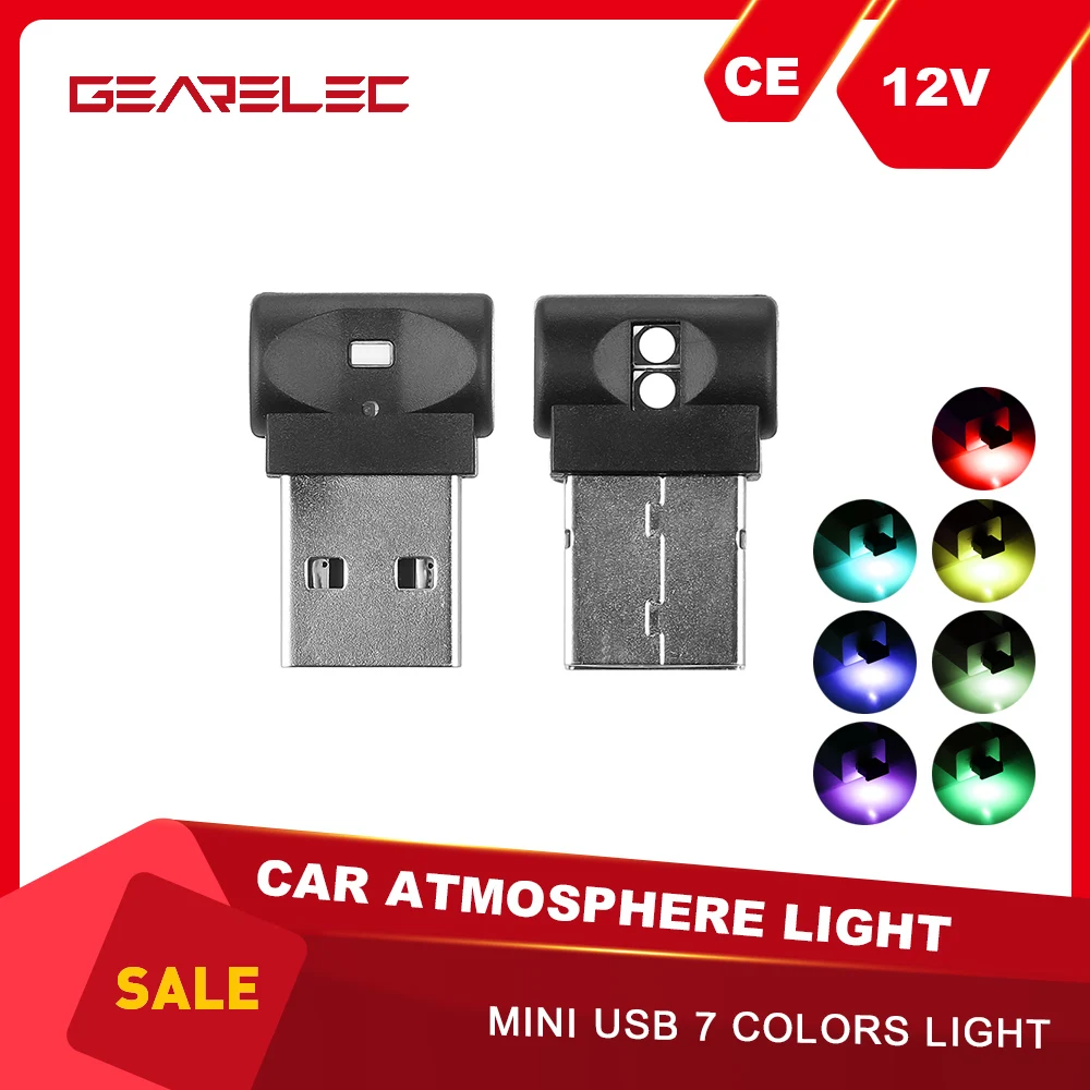 Миниатюрный светодиодный светильник для автомобиля, 7 цветов, USB