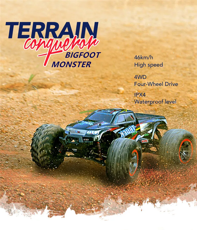 Машинка на радиоуправлении JTY Toys 1:10, Monster Bigfoot, для езды по бездорожью, водонепроницаемость IPX4, скоростная Радиоуправляемая машина для взрослых, 46 кмч