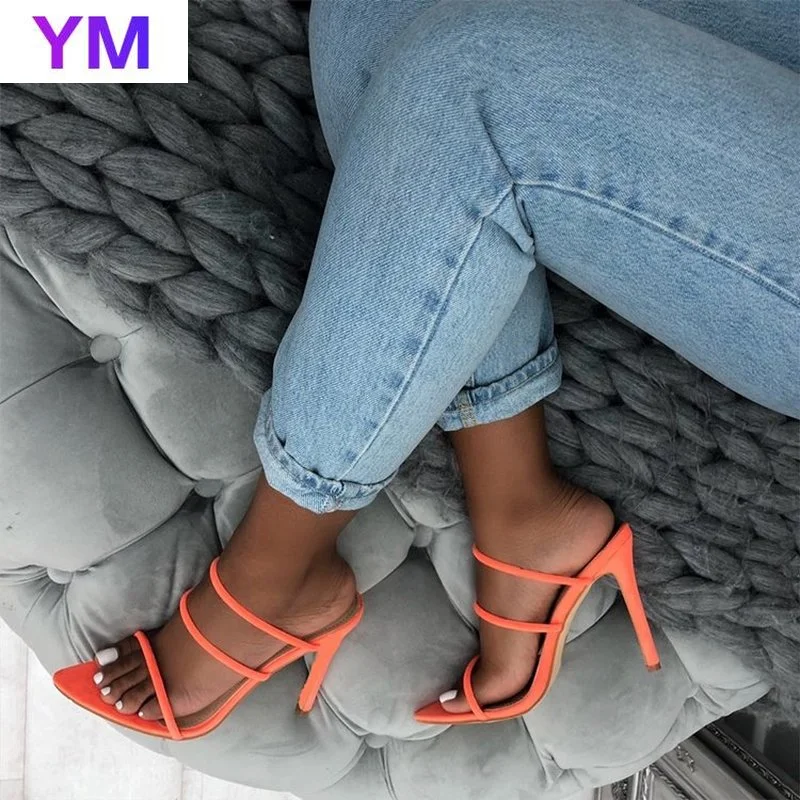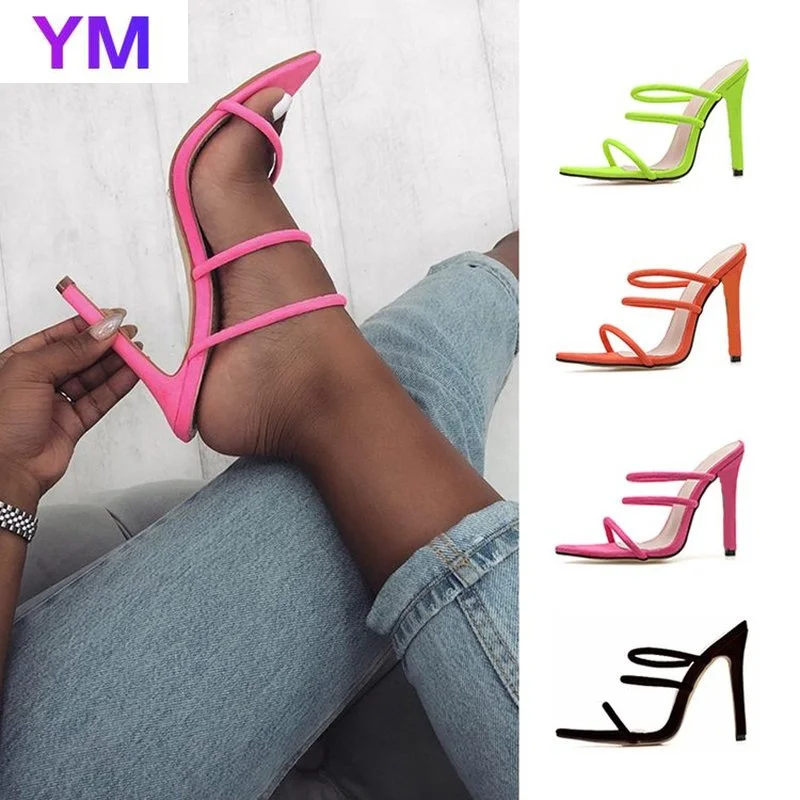 Шлепанцы женские летние с острым носком, уличные сандалии на каблуке, с эластичным ремешком, Классическая обувь для вечерние, большие размеры 42, 4 цвета