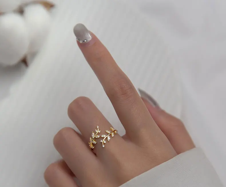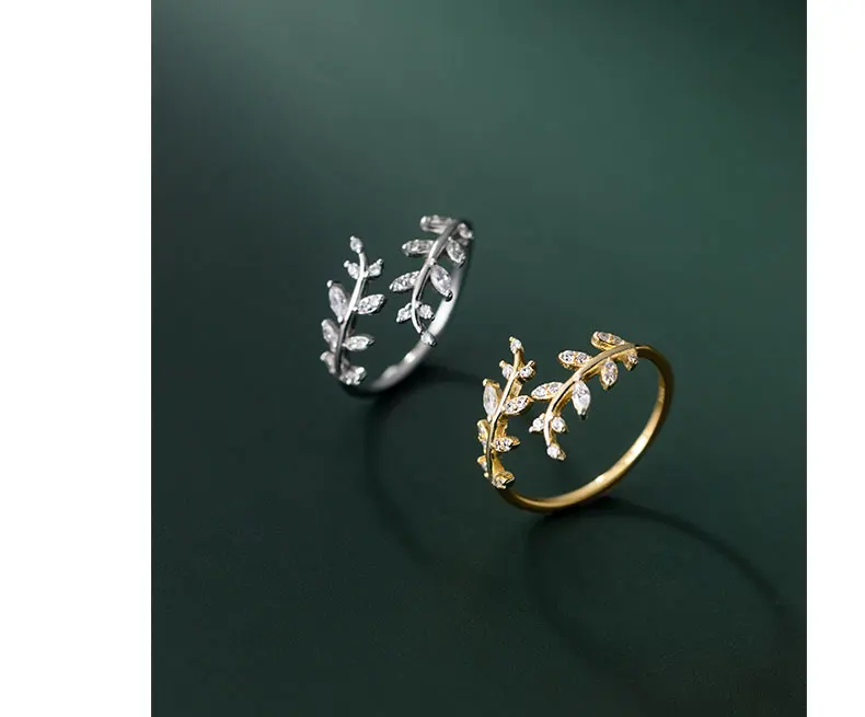 MloveAcc 925 стерлингового серебра Открыть Кольца для Для женщин в Корейском стиле; Милые расцветки; Для любителей с листьями и блестящий хрустальный камень ювелирные изделия