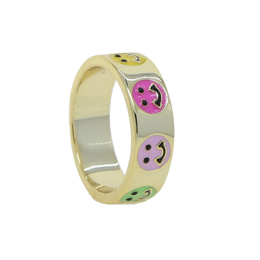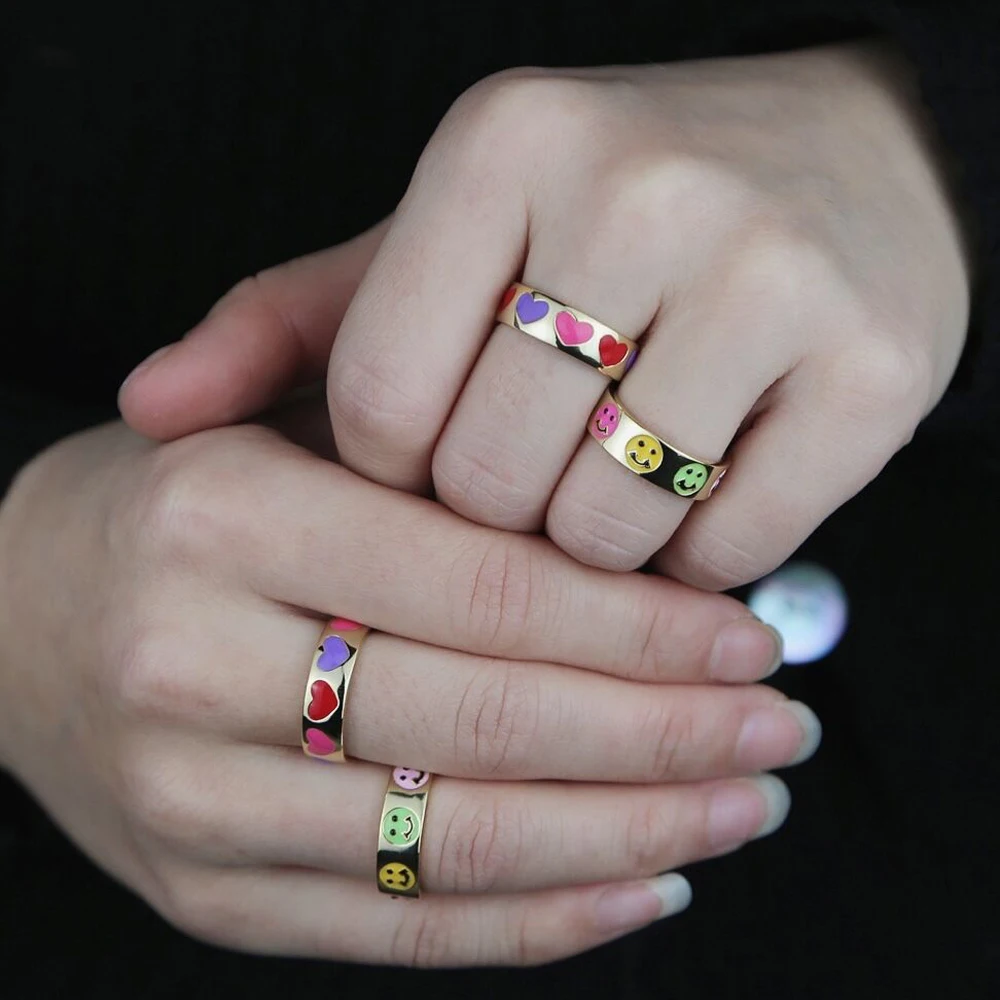 Цвет Фул эмаль в форме сердца улыбающееся лицо кольцо для женщин, ювелирные изделия для девушек, Золотая Цвет очаровательный прекрасный вечность ремешок на пальцы рук для штабелирования цветы кольца