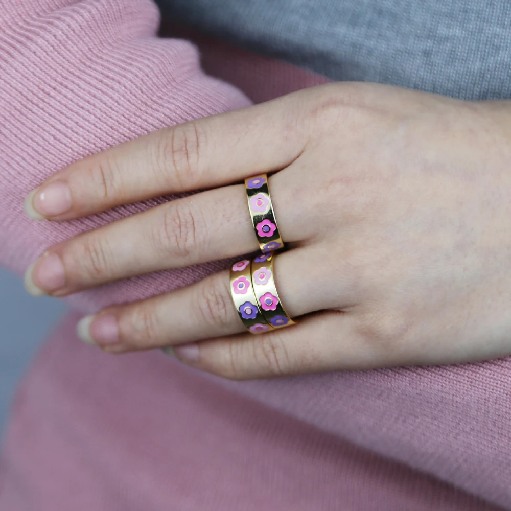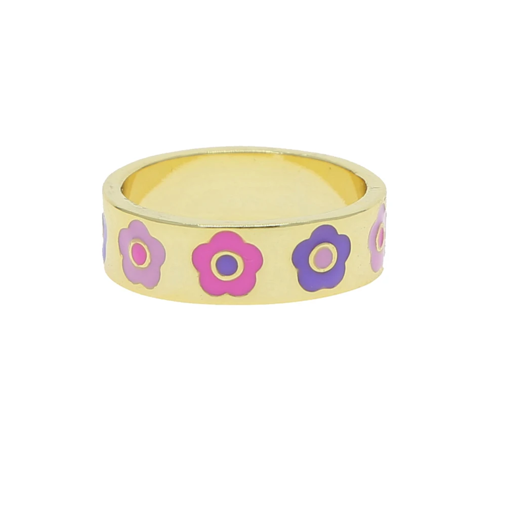Кольцо женское неоновое, эмалированное, золотой цвет милый цветов, ...
