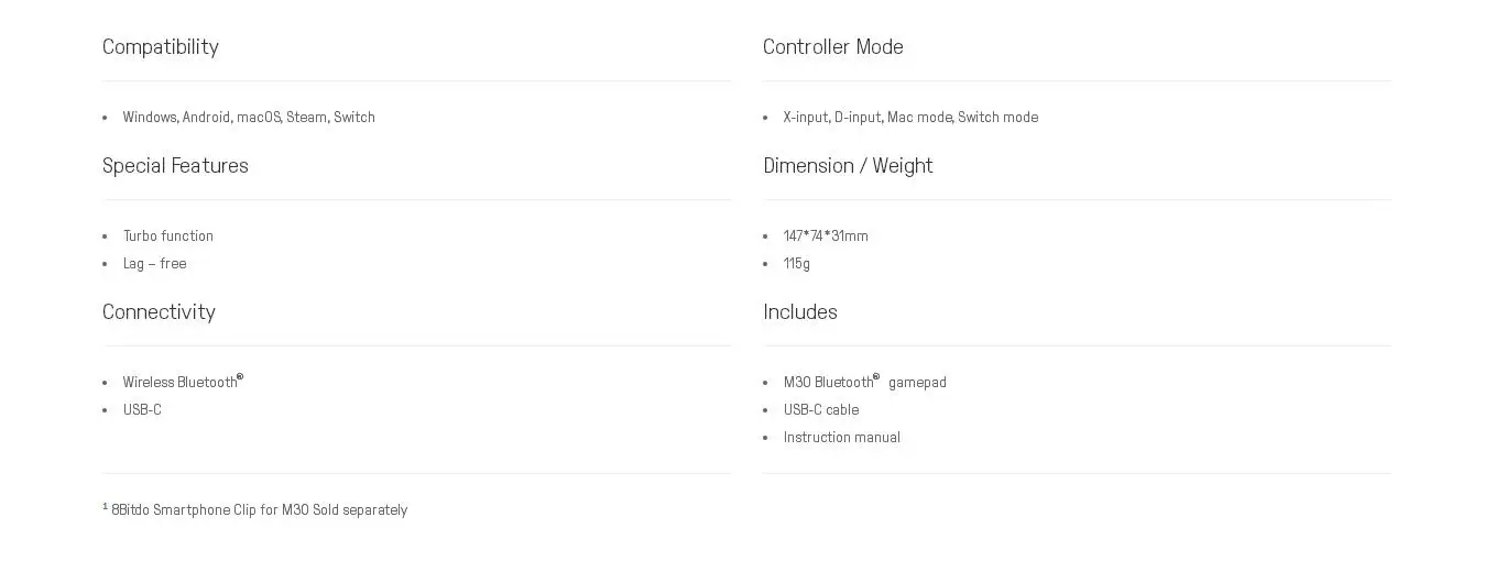 Model8Bitdo M30 Wireless Bluetooth Gamepad