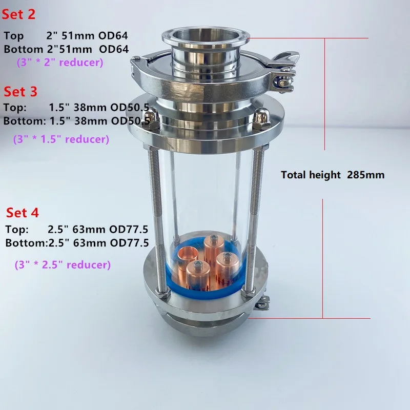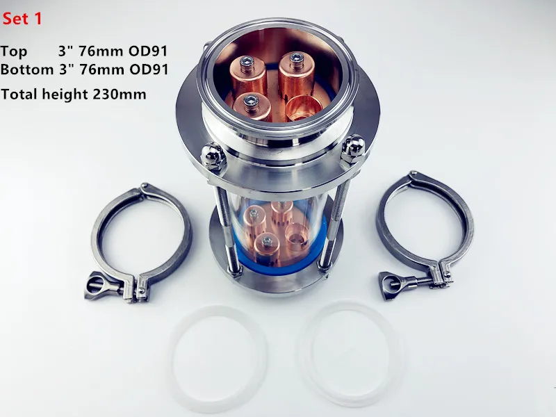Новинка, 2 этажа, 3 дюйма, дистилляционная линза, колонна с медными наборами, тройной зажим, смотровое стекло, соединение, нержавеющая сталь 304 Набор 1 1. Столбик из боросиликатного стекла, внешний диаметр 80 мм, внутренний диаметр 70 мм, высота 160 мм-1 шт 2. Наборы медных пузырьковых пластин (медная пластина * 1, медная крышка * 3, медная Нижняя крышка * 1)-2 шт. 3. Резьбовой стержень с гайками SS304--4 комплектов 4. 3 дюйма 76 мм od91 мм фланец с тремя зажимами SS304-2 шт. 5. Специальная силиконовая прокладка для верхнего и нижнего фланца-2 шт. 6. 3 "три зажима с силиконовой прокладкой-2 шт. Комплект 2 1. Столбик из боросиликатного стекла, внешний диаметр 80 мм, внутренний диаметр 70 мм, высота 160 мм-1 шт 2. Наборы медных пузырьковых пластин (медная пластина * 1, медная крышка * 3, медная Нижняя крышка * 1)-2 шт. 3. Резьбовой стержень с гайками SS304--4 комплектов 4. 3 дюйма 76 мм od91 мм фланец с тремя зажимами SS304-2 шт. 5. Специальная силиконовая прокладка для верхнего и нижнего фланца-2 шт. 6. Короткий тройной зажим 3 "(76 мм) OD91 x 2"(51 мм) OD64, SS304 --- 2 шт. 7. 3 "три зажима с силиконовой прокладкой-2 шт. Комплект 3 1. Столбик из боросиликатного стекла, внешний диаметр 80 мм, внутренний диаметр 70 мм, высота 160 мм-1 шт 2. Наборы медных пузырьковых пластин (медная пластина * 1, медная крышка * 3, медная Нижняя крышка * 1)-2 шт. 3. Резьбовой стержень с гайками SS304--4 комплектов 4. 3 дюйма 76 мм od91 мм фланец с тремя зажимами SS304-2 шт. 5. Специальная силиконовая прокладка для верхнего и нижнего фланца-2 шт. 6. Короткий тройной зажим 3 "(76 мм) OD91 x 1,5"(38 мм) OD50.5, SS304 --- 2 шт. 7. 3 "три зажима с силиконовой прокладкой-2 шт. Набор 4 1. Столбик из боросиликатного стекла, внешний диаметр 80 мм, внутренний диаметр 70 мм, высота 160 мм-1 шт 2. Наборы медных пузырьковых пластин (медная пластина * 1, медная крышка * 3, медная Нижняя крышка * 1)-2 шт. 3. Резьбовой стержень с гайками SS304--4 комплектов 4. 3 дюйма (76 мм) OD91 фланец с тремя зажимами SS304-2 шт. 5. Специальная силиконовая прокладка для верхнего и нижнего фланца-2 шт. 6. Короткий тройной зажим 3 "(76 мм) OD91 x 2,5"(63 мм) OD77.5, SS304 --- 2 шт. 7. 3 "три зажима с силиконовой прокладкой-2 шт.