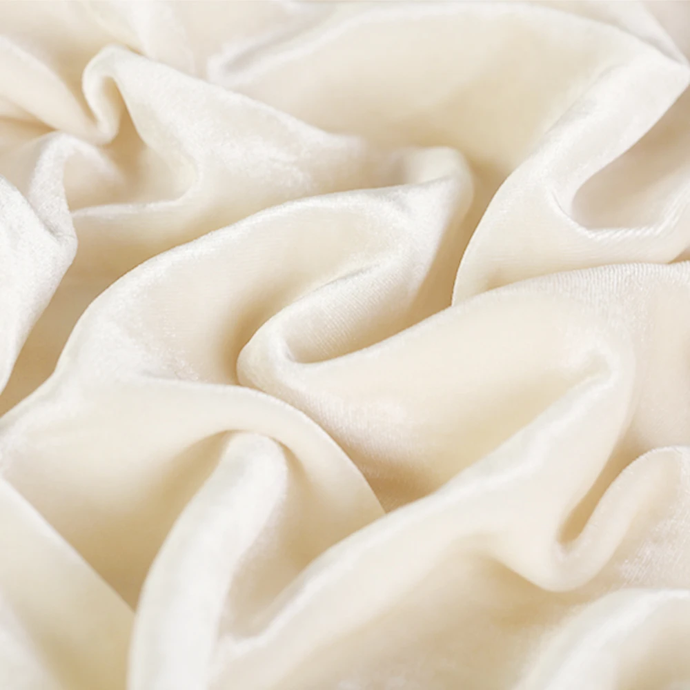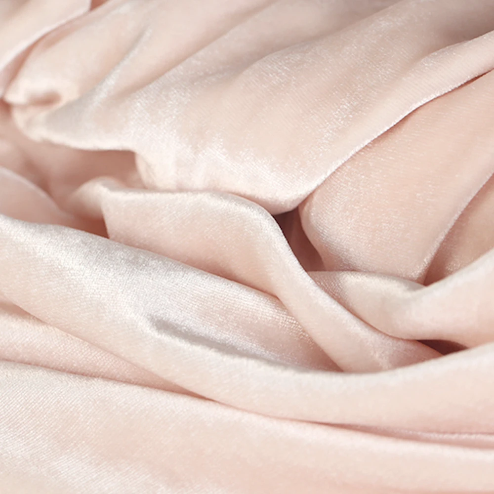 Шелковый бархат-это вид шелковой ткани, элегантный, роскошный, классический, как всегда. Основа ткани изготовлена из 100% шелка жоржет, а поверхность бархата-из 100% полиэстера. Ткань очень мягкая, прохладная для кожи и теплая осенью, поэтому она в основном сделана в качестве костюма или вечернего платья.