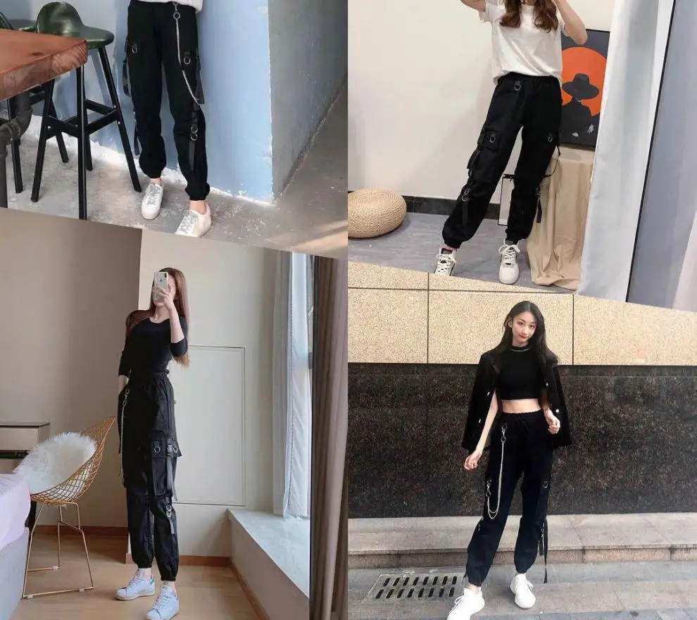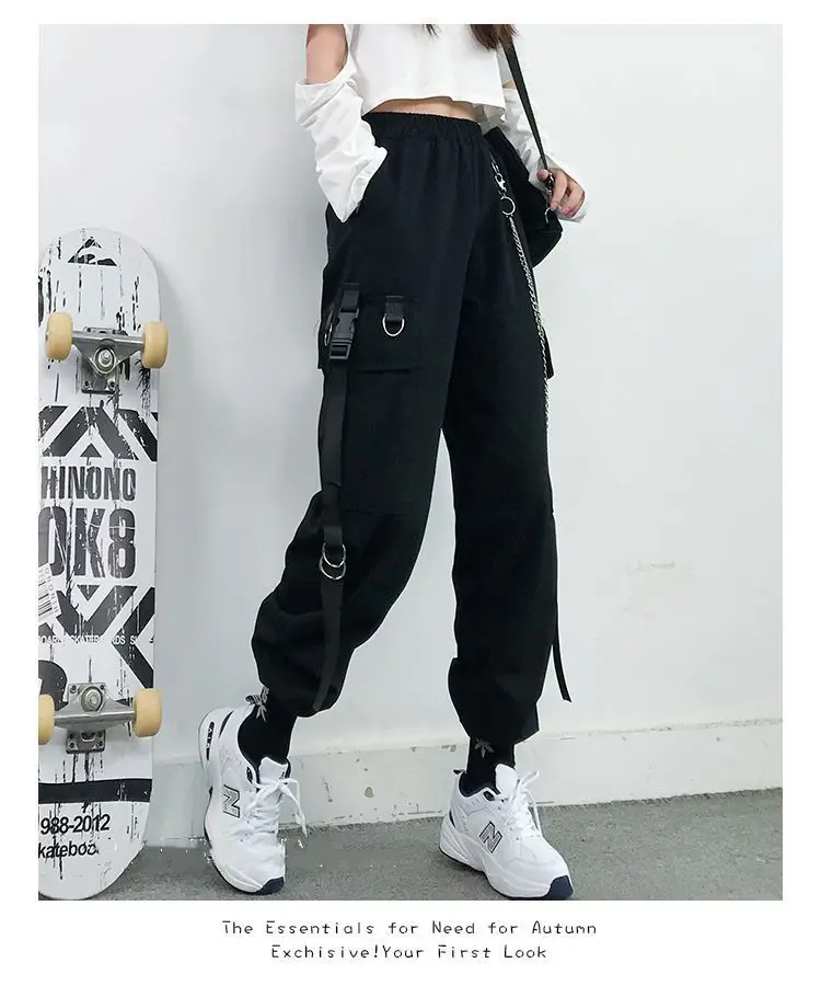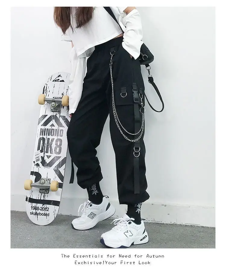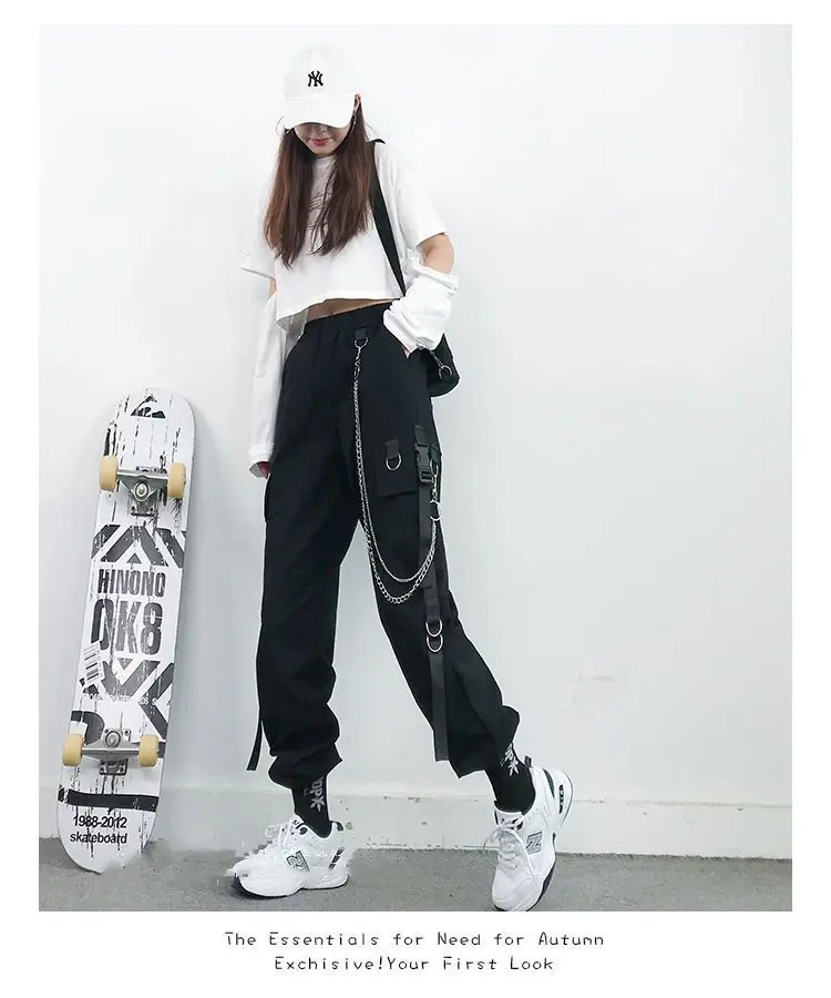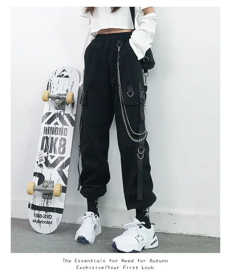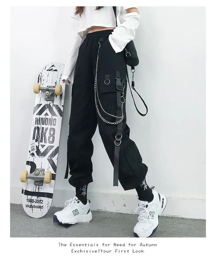 Брюки-карго женские Y2K, с цепочкой, Джоггеры в готическом стиле, шаровары с высокой талией, технология Alt, брюки Харадзюку