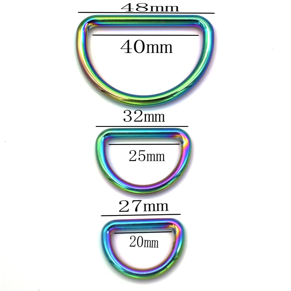 4/5 ''1'' 3/5 ''Радужное D-образное кольцо, не сварные D-образные пряжки, полукруглые пряжки, скользящие D-образные кольца, пряжки для ремня Craft Hardware-6pcs