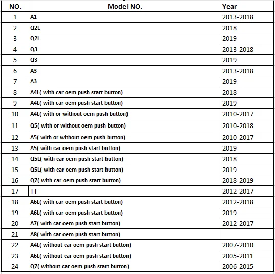 Это EASYGUARD Plug and Play пульт дистанционного стартера PKE kit кнопка пуска подходит для выбора бензина Audi со стандартным ключом, CAN шина совместимаБензиновый с автоматической коробкой передачA1 2013-2018, Q3 2013-2019, TT 2008-2017.