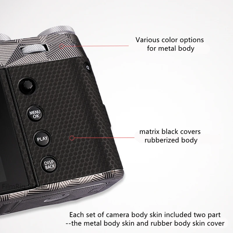 Точные размеры-отрезаны лазеромОбеспечьте вашу камеру все вокруг защиты без дополнительного весаОбеспечивает полный доступ к каждой кнопке и шкалеЧасть матрицы предотвращает скольжение объектива от рукЛегко надевать и сниматьНе оставляет клея/остатка на поверхности корпуса объективаГарантированный качественный материалУстойчивый к царапинам и ударопрочныйВодонепроницаемый и легко чиститсяПожалуйста, выберите свою любимую модель при оформлении заказа