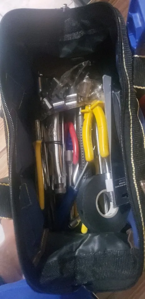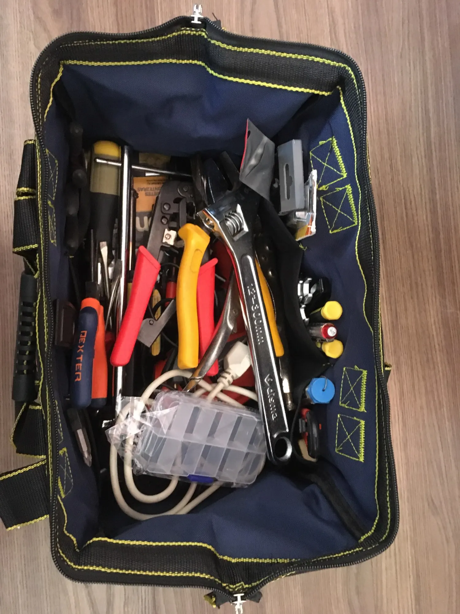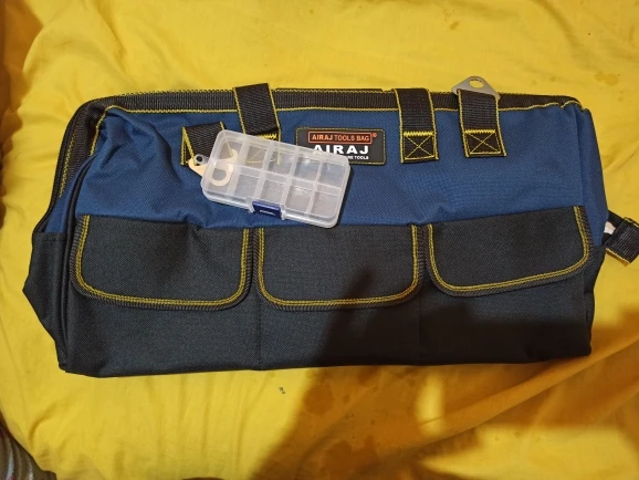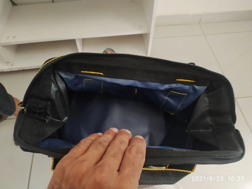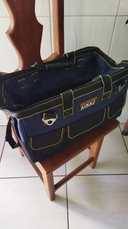 bolsinha muito boa, comprei a mais baratinha de r$ 68 frete grátis ela é minúscula , boa para alicates, martelo, fendas e Philips. para objeto grande s mais barata não dá, só consigo por minha parafusadeira se ficar com parte do cabo de energia para fora, acredito que furadeira a bateria caiba. Eu também pensava que a bolsa era um pouquinho maior, mais é minúscula mesmo