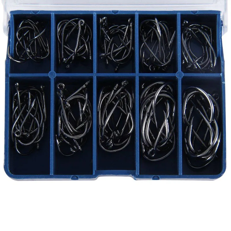 Особенности: Включает в себя 100 рыболовных крючков. Разный размер от 3 # до 12 #. Супер четкость и долговечность. Изготовлен из высококачественной стали. Чудесный рыболовный инструмент для любителей рыбалки.