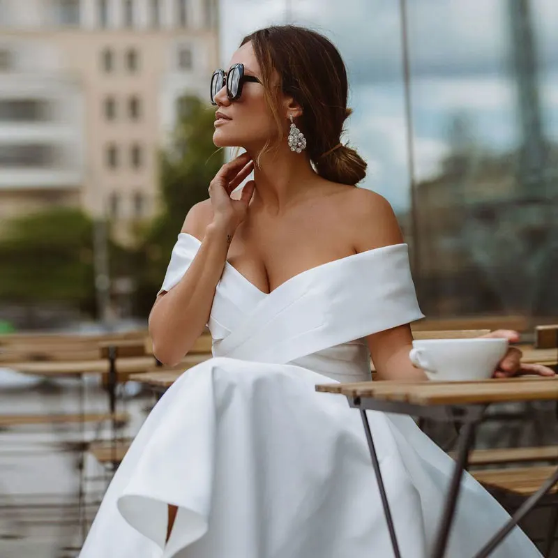 Платье женское атласное с открытыми плечами, свадебное вечернее платье, простая формальная одежда для невесты