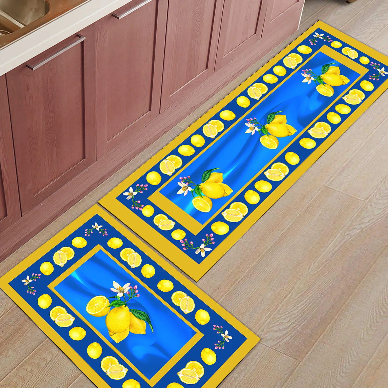 Лимон цветы синий текстура Кухня коврик дома Спальня Гостиная ковер входная дверь уличный дверной коврик