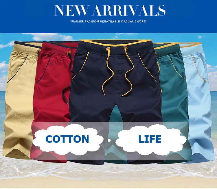 Мужские хлопковые шорты с эластичной талией, летние пляжные шорты с...