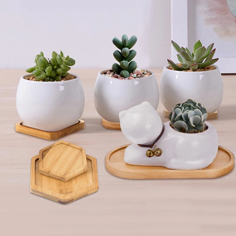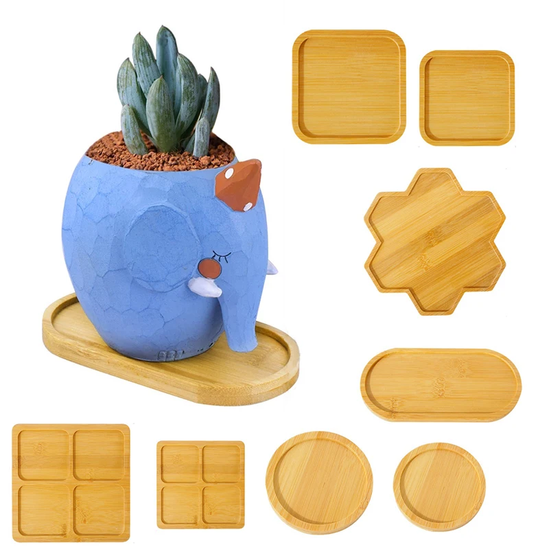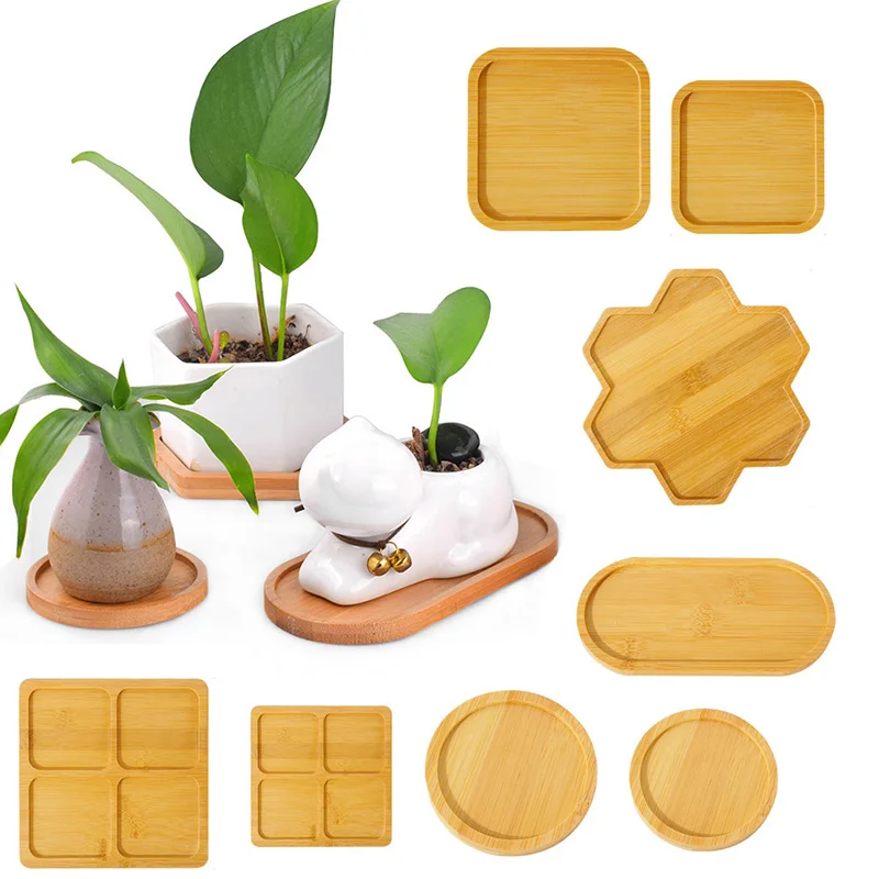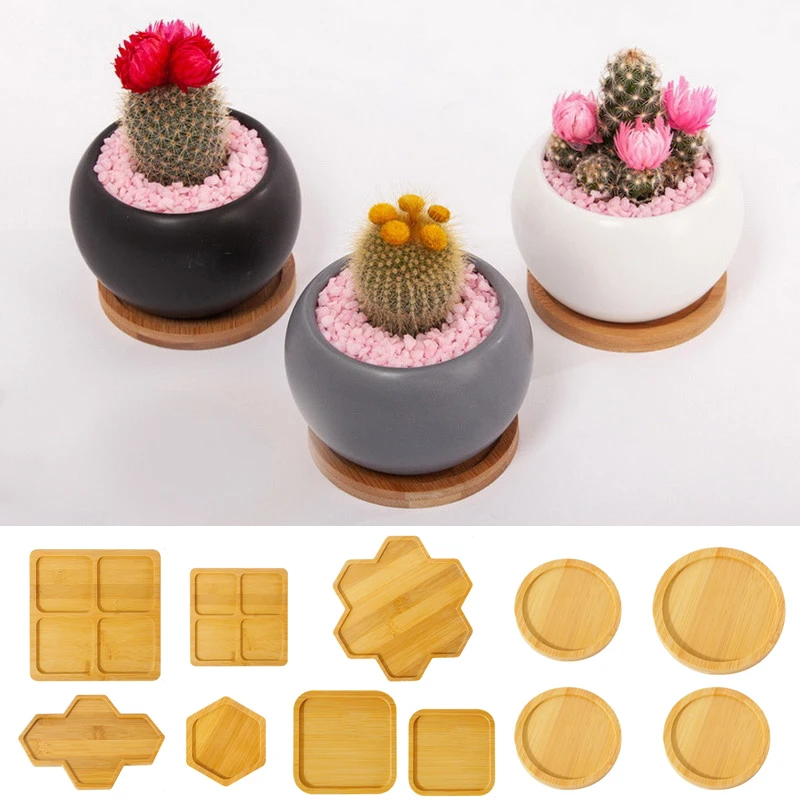 Цветочные горшки для суккулентов, кашпо, бамбуковый поднос, Круглый, квадратная Подставка под стакан, минимализм, садоводство, Сельский стиль, держатель для цветов