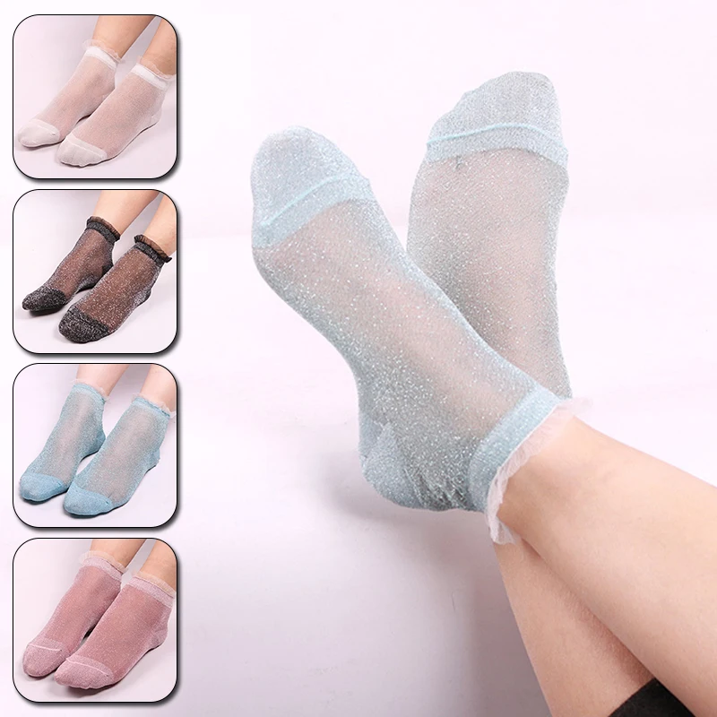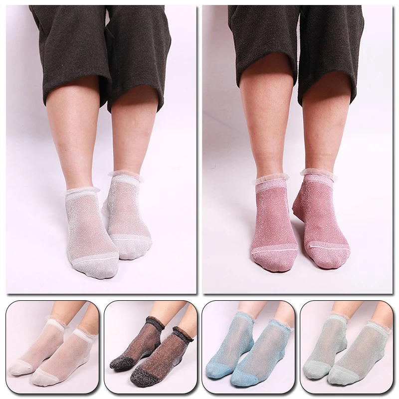 1 пара, женские сетчатые кружевные мягкие удобные прозрачные шелковые эластичные сетчатые трикотажные пикантные прозрачные забавные блестящие носки до щиколотки