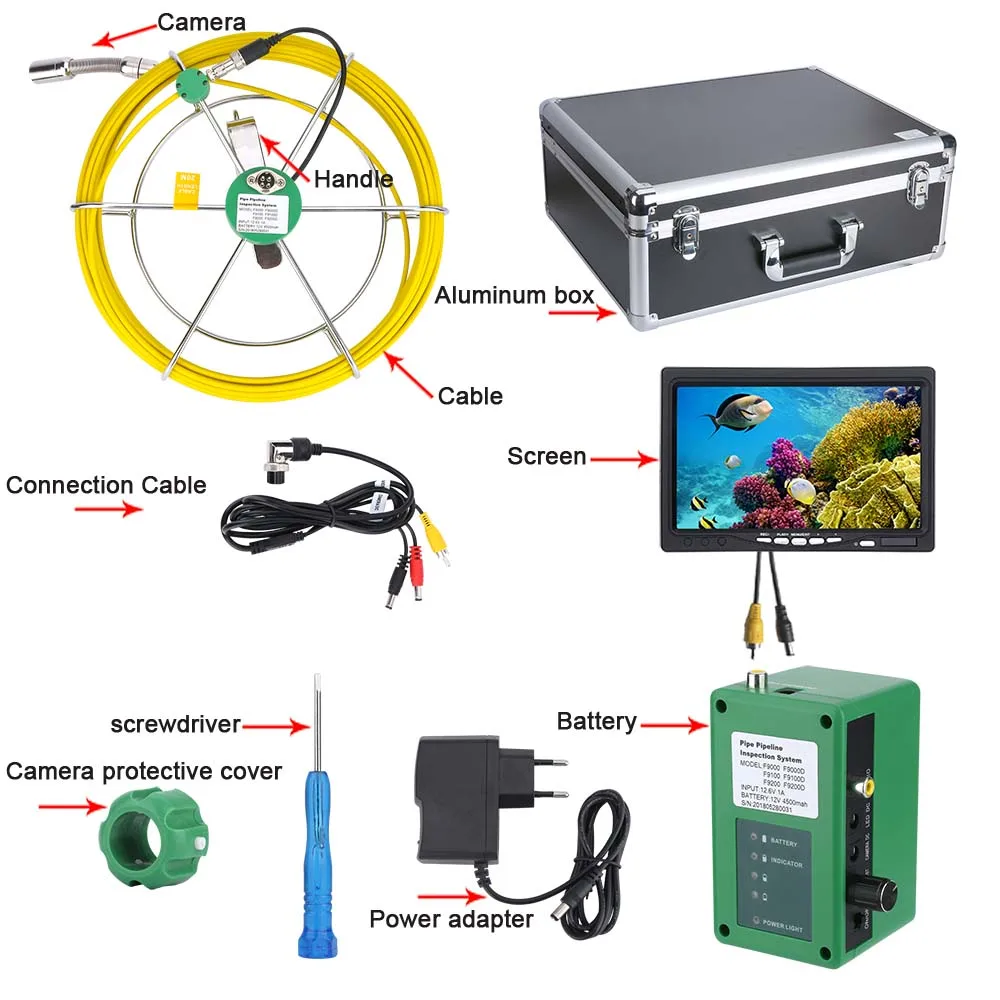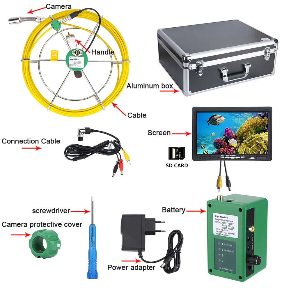 Видеокамера для обследования труб 1000TVL с ЖК-дисплеем 7 дюймов, водонепроницаемая промышленная эндоскопическая камера IP68 для сточных вод