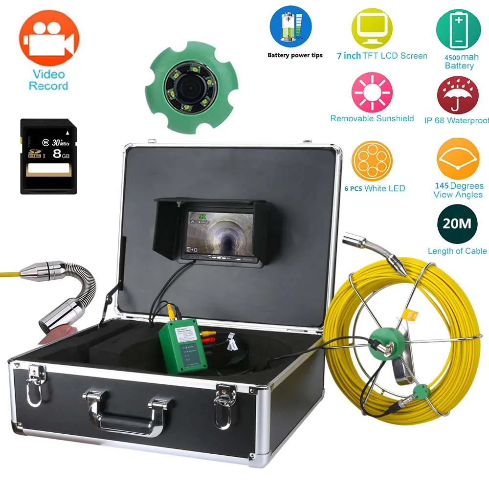Труба инспекционная видеокамера, 20 м IP68 Водонепроницаемая дренажная труба канализационная Инспекционная камера система 7 "LCD 1000 TVL камера с 6W светодиодный свет
