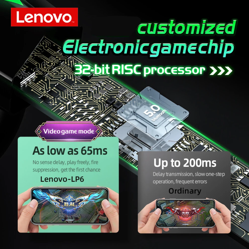 Игровые наушники Lenovo LP6 TWS, новые беспроводные bluetooth наушники с шумоподавлением, Двухрежимная гарнитура для киберспорта, игр, музыки