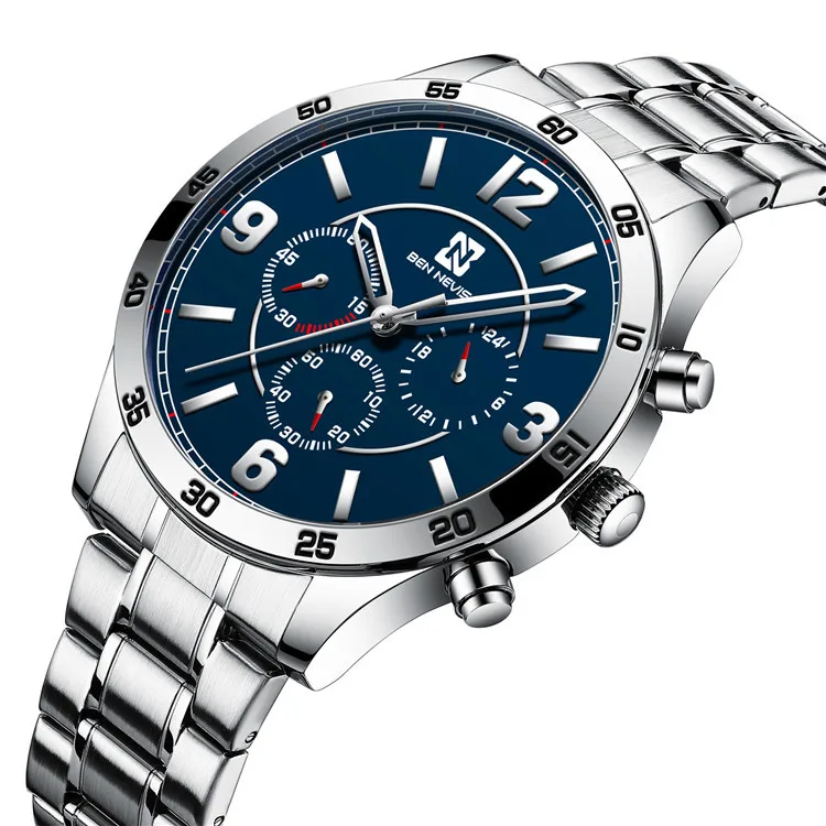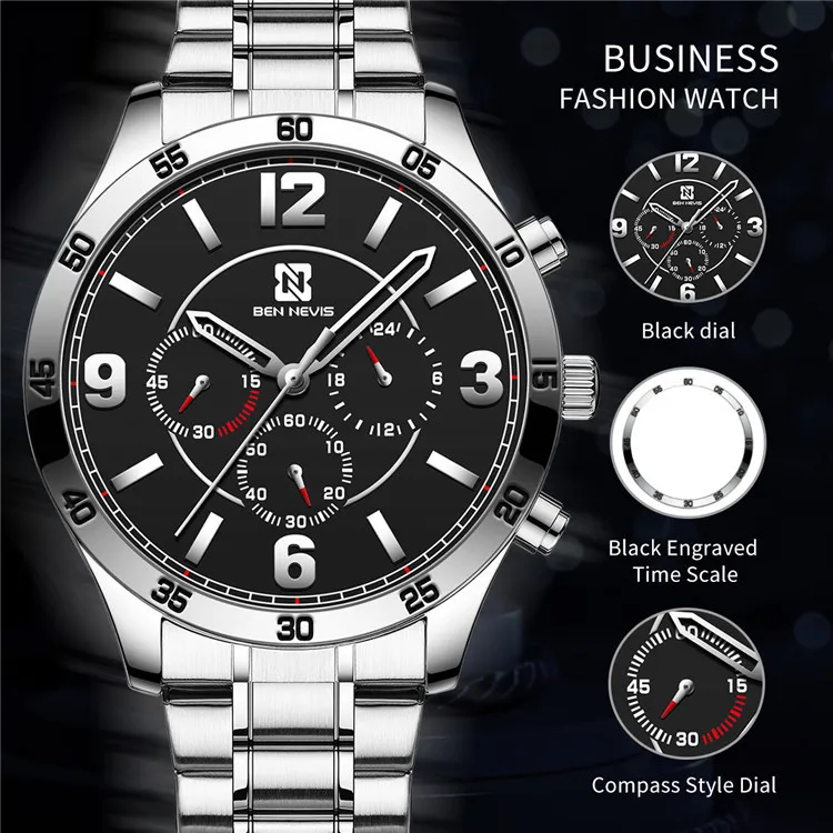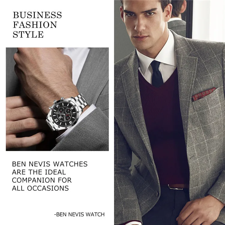 Бен Невис Новая мода полный стали бизнес Кварцевые часы мужские час...