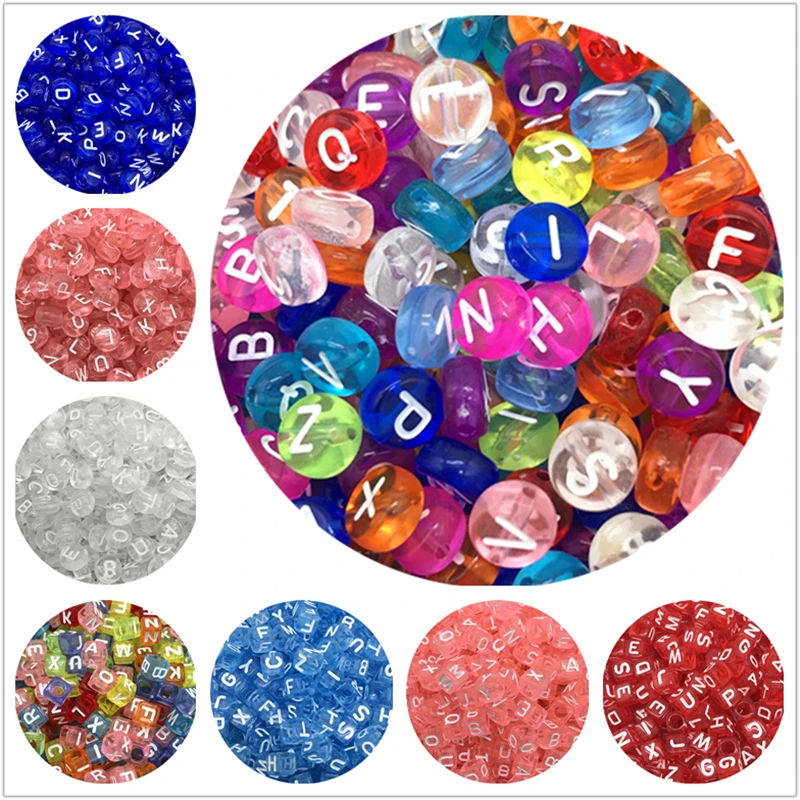 Бусины из акрила в виде букв сделай сам, квадратные овальные разных цветов с отверстием насыпью, для изготовления ювелирных изделий, браслетов, цепочек, 100 штук, 6 мм, 7 мм