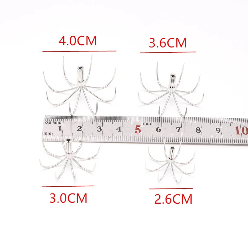 YJBYYX 10 шт.лот новый крючок для кальмара с 8 крапанами жесткий крючок из нержавеющей стали без зазубрины 4,03,63,02,6 см Крючок для морской рыбалки осьминог