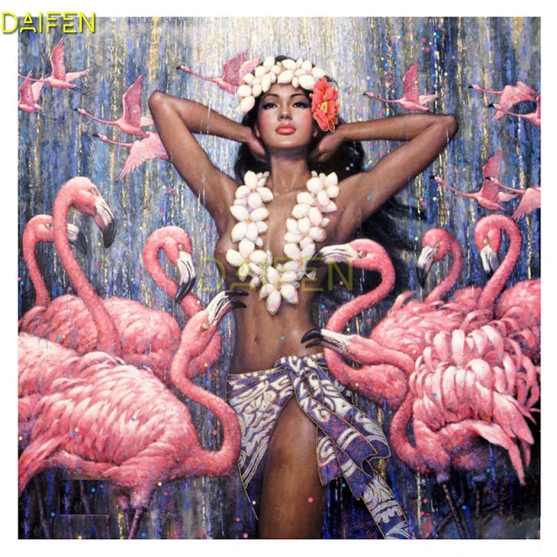 Полноразмерная алмазная живопись, вышивка крестиком, Пляжная девушка, Лилия, полная круглая Алмазная вышивка, фламинго, птица, DIY 3D искусство