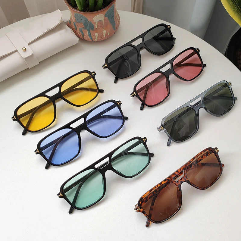Солнцезащитные очки квадратной формы S466 для мужчин и женщин, большие, с двойной перемычкой, с синими и желтыми линзами, с защитой UV400, 2021