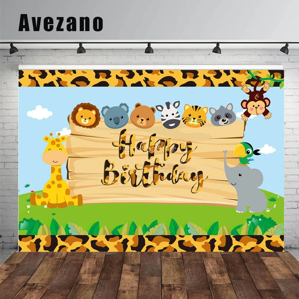 Avezano Джунгли Лес Дикий сафари животные фоны новорожденный ребенок день рождения Декор Леопард фотографии фоны фотосессия