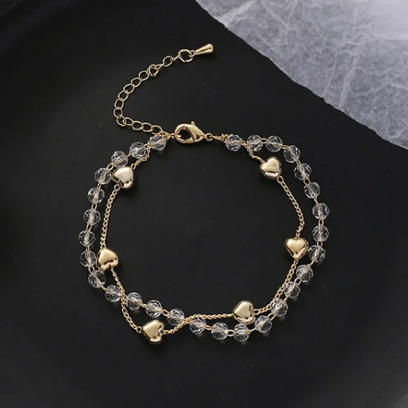 Браслет Регулируемый Женский, изящный браслет с бусинами и кристалл...