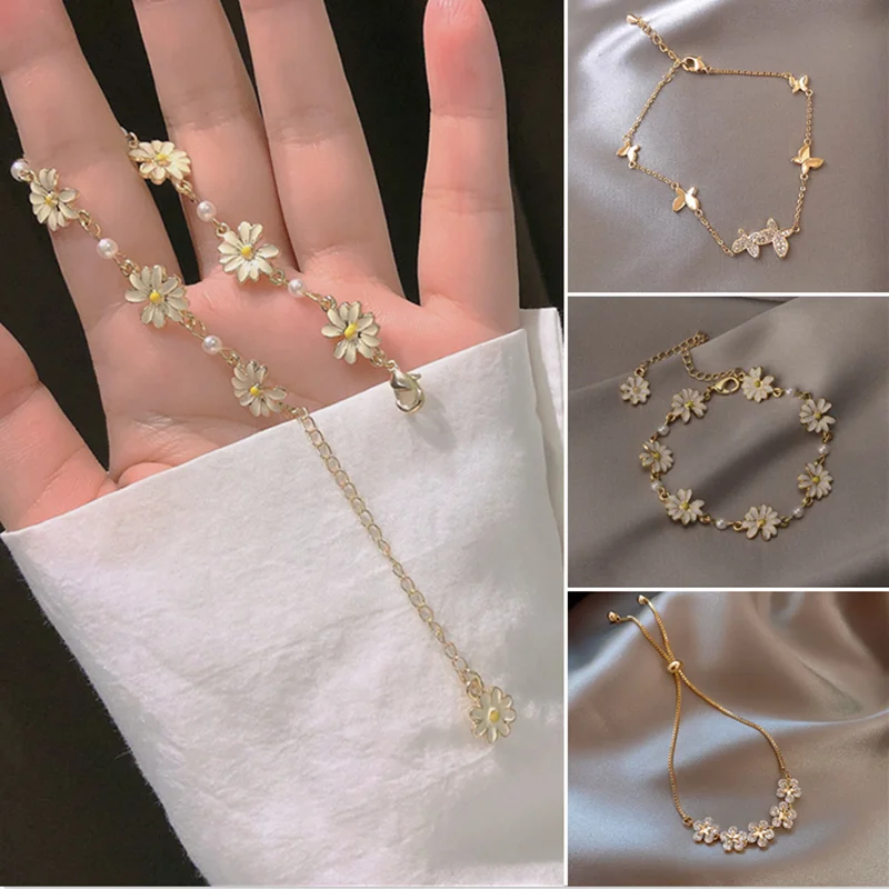 Модный Универсальный браслет с цветами-бабочками, циркониевый жемчуг, Милая ромашка, браслет для женщин, новинка 2021, ювелирные изделия, пара, подарок дружбы