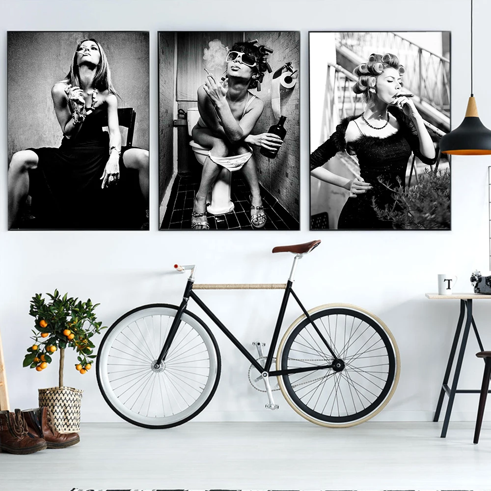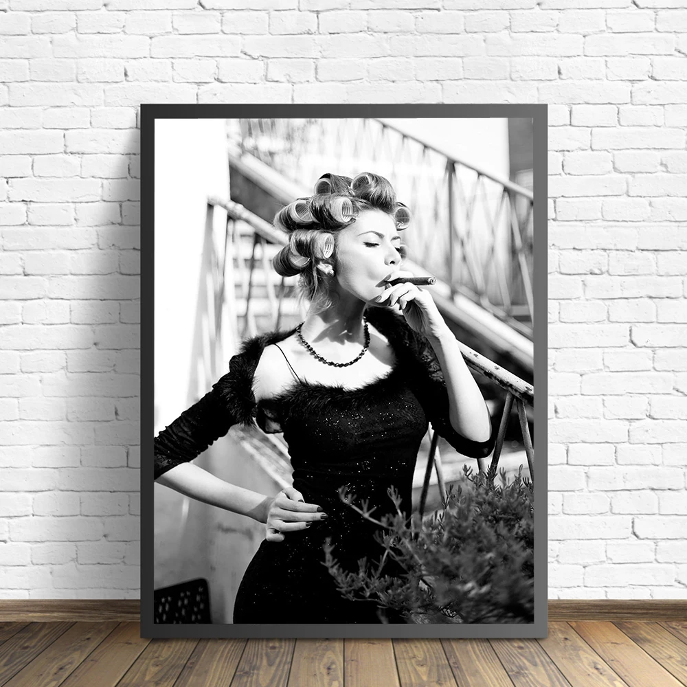 Черные, белые сексуальные губы, леди, настенные художественные принты на холсте, постер, картина для курительной девушки для женщин, ретро фото, модная фигурка, картина, декор