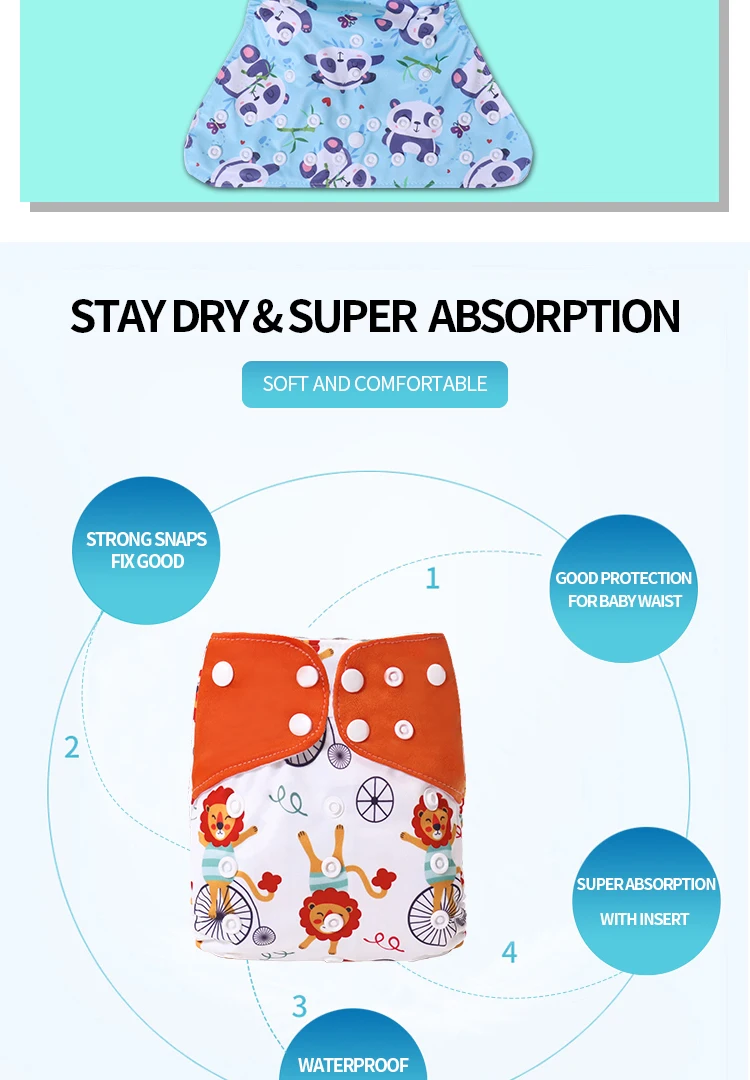 Наименование товара: детские подгузники одного размераРазмер: регулируется по размеру: 3-15 кг и 3-36 месяцев для малышейМатериал:Внешний слой: водонепроницаемый с принтомВнутренний слой: замшевая ткань, дышащая и впитывающая влагуИнструкции по уходу:: Стирать тканевые подгузники отдельно от другой стирки: Отдельный вкладыш от подгузников. Если твердый, вытрите твердые отходы в туалет.: Промойте в холодной воде. Машинная стирка в теплой воде, с использованием мягкого моющего средства (менее 95 °F), рекомендуется Babyhug стиральный порошок.: Сушить вручную, не использовать размягчители ткани, отбеливатели и сушилки.Сколько подгузников вам нужно?-Новорожденный до 4 месяцев-20 ~ 30 подгузников-Младенец (от 4 до 10 месяцев) -- 20 ~ 25 подгузников-Малыш (более 10 месяцев)-15 ~ 20 подгузников