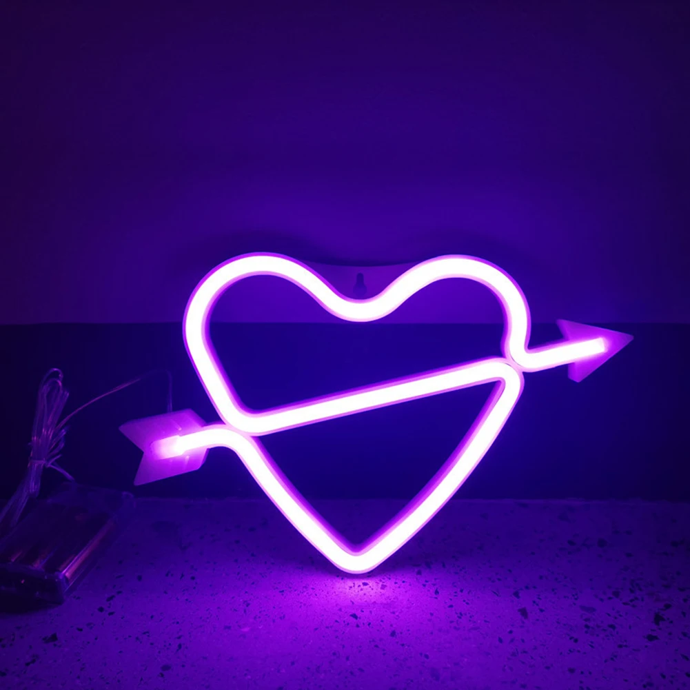 Светодиодный неоновый светильник в форме стрелы сердца, цветная Радужная неоновая вывеска, настенная Ночная лампа для дома, вечерние, праздничные, свадебные, праздничные украшения