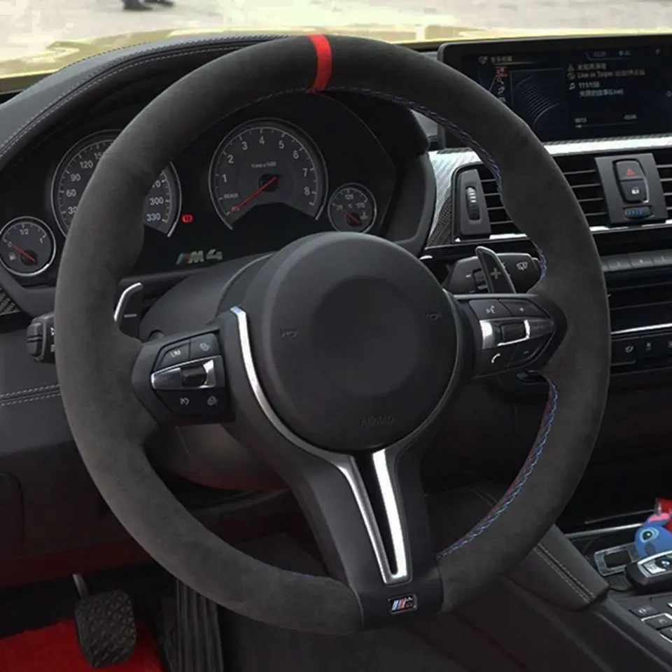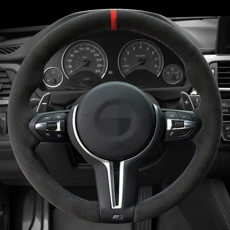 Чехол рулевого колеса автомобиля черного цвета из натуральной кожи и замши, для BMW M3 M4 2014-2016 F33 428i 2015 F30 320d 328i 330i 2016