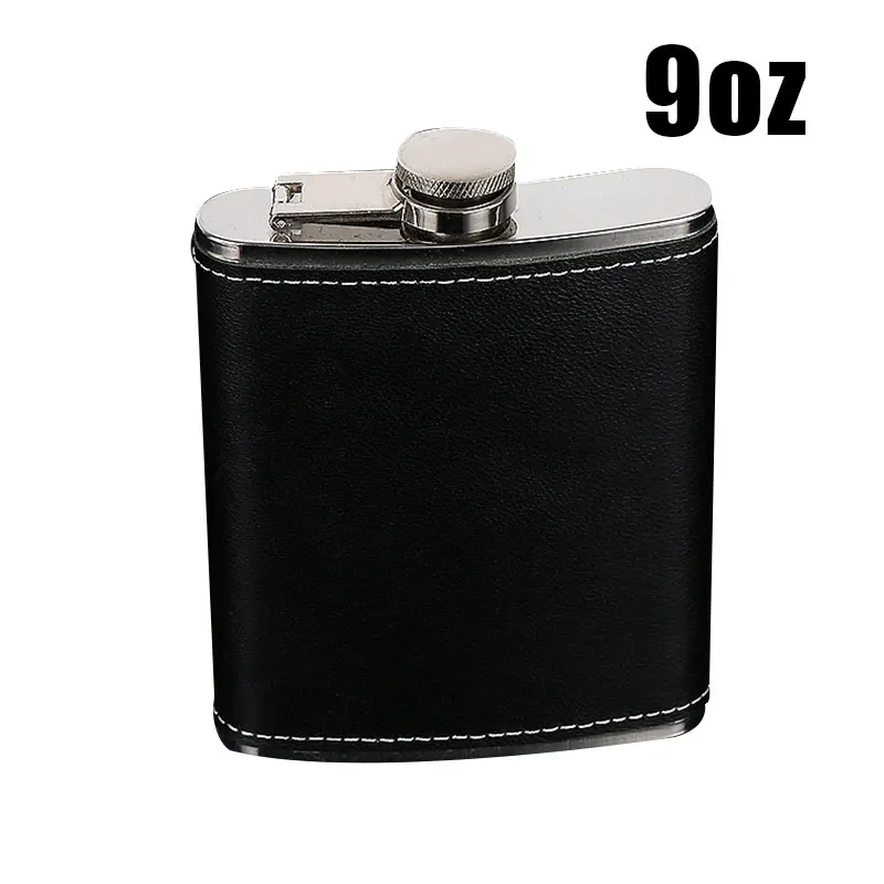 Портативная фляга из нержавеющей стали, фляга для виски, винный горшок, бутылка в подарок 56789 унций с кожаным держателем BOM666