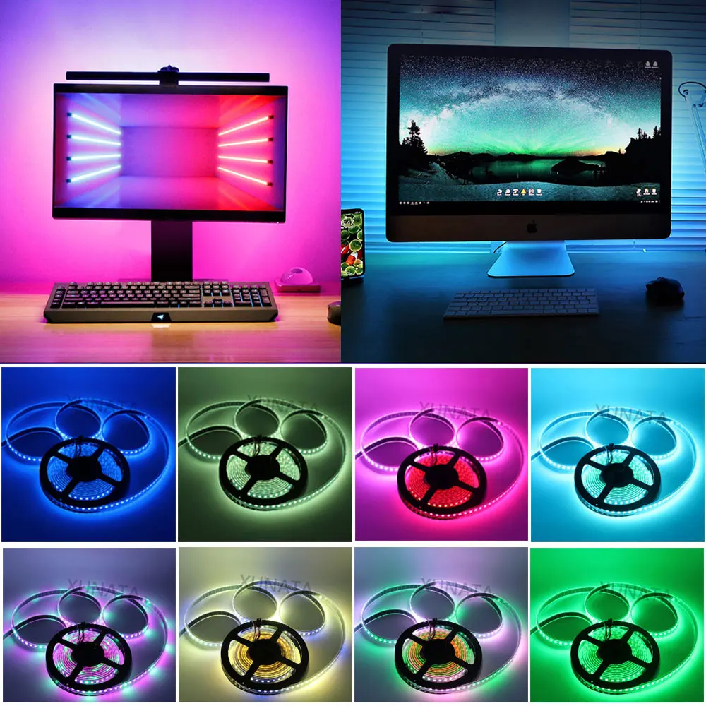 5V WS2812B USB Светодиодные ленты светильник 5050 RGB Мечта Цвет окружающей среды набор для телевизора 1 м 2 м 3 м 4 м 5 м для настольных ПК Экран фон светильник Инж
