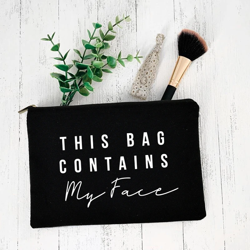 2021 модная косметичка-органайзер, сумка чистого черного цвета, эта сумка содержит мое лицо, милые косметички с надписью и принтом, женская косметичка