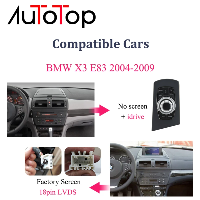 BMW X3 E83 2004-2010 без экрана/с коробкой для хранения BMW X3 E83 2004-2010 с заводским экраном (18 Pin LVDS)