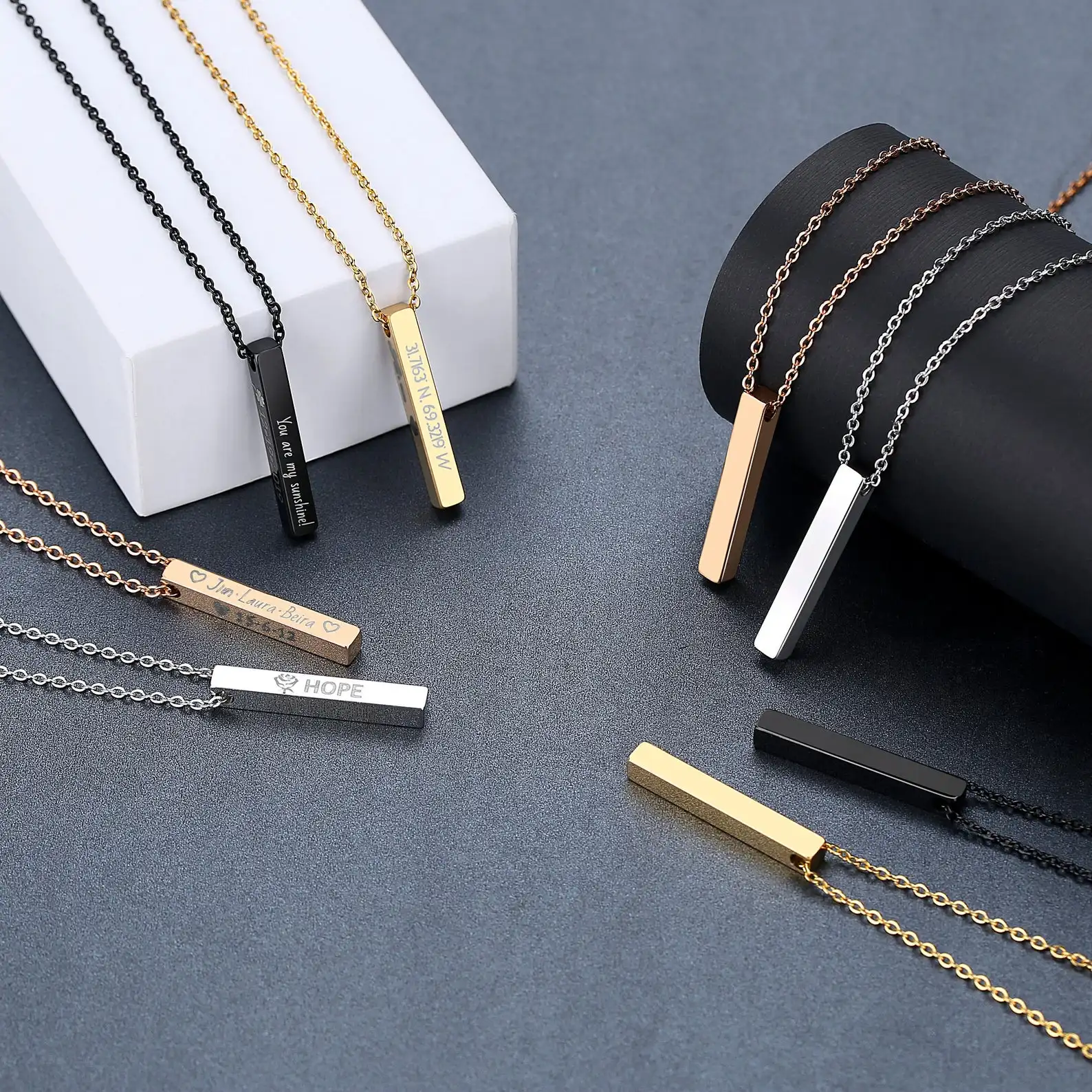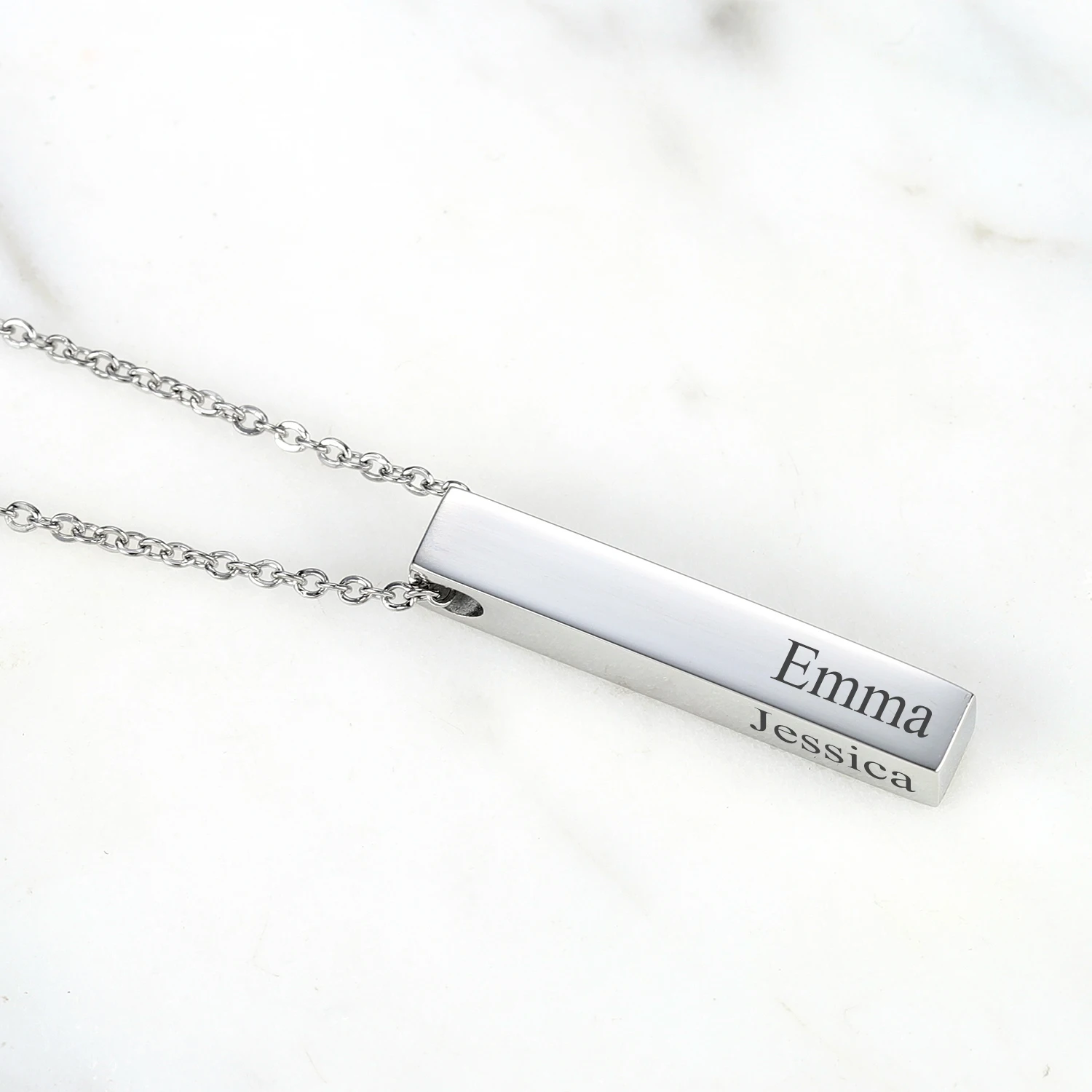 Персонализированное вертикальное ожерелье с четырьмя гравировками имени, 3D ожерелье из нержавеющей стали, бижутерия на заказ, сделай сам, именной кулон для женщинмужчин