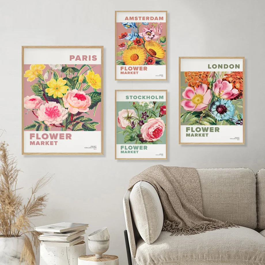 Абстрактный Цветочный рынок Винтаж минималистское искусство стены х...