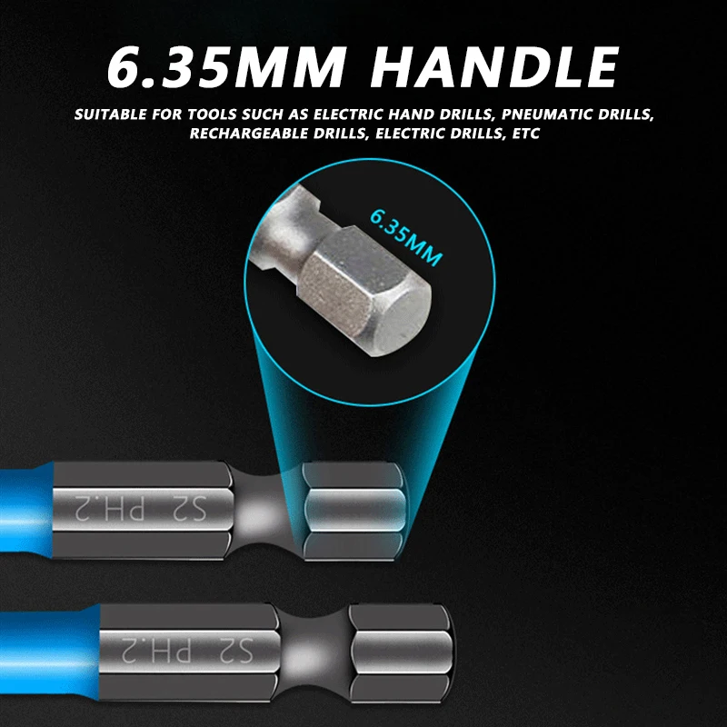 Насадки для отвертки шестигранные S2 2550657090125150 мм Нескользящие магнитные насадки 14 Ph2 шестигранный хвостовик подходит для ручного электродрели