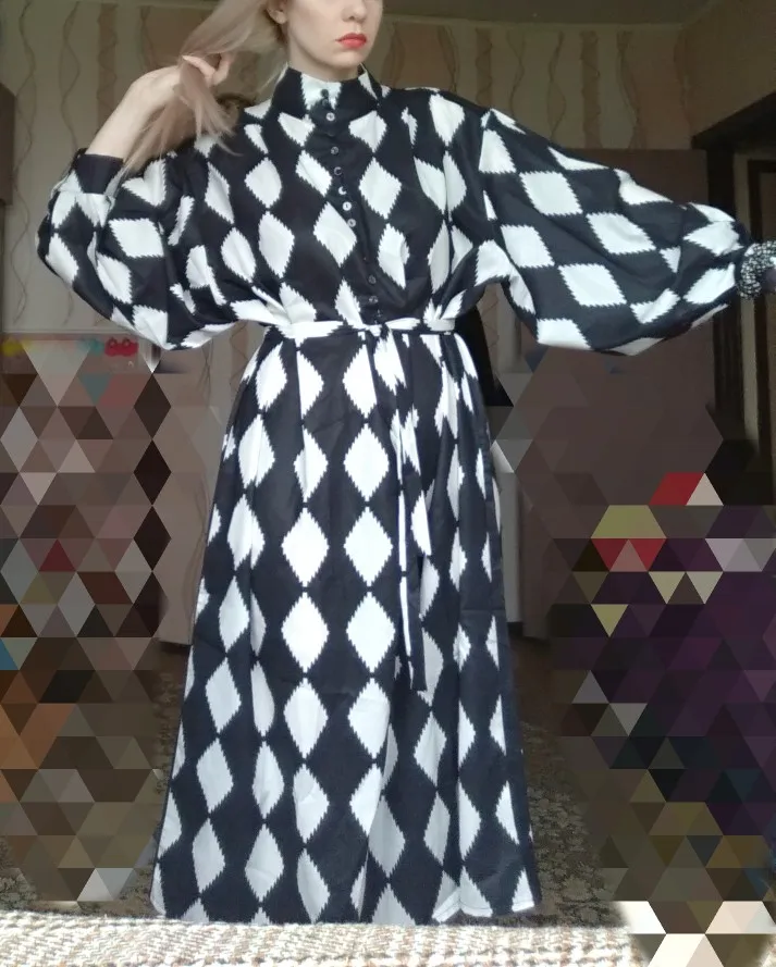 ZAWFL элегантное вязаное женское платье с длинным рукавом и пуговиц...