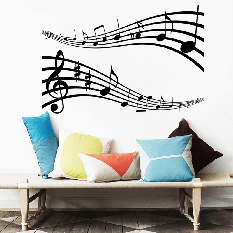 Виниловые наклейки с музыкальными нотами, художественные наклейки для гостиной, спальни, дивана, фона, настенные декоративные наклейки, настенные винтажные самоклеящиеся наклейки DW9495