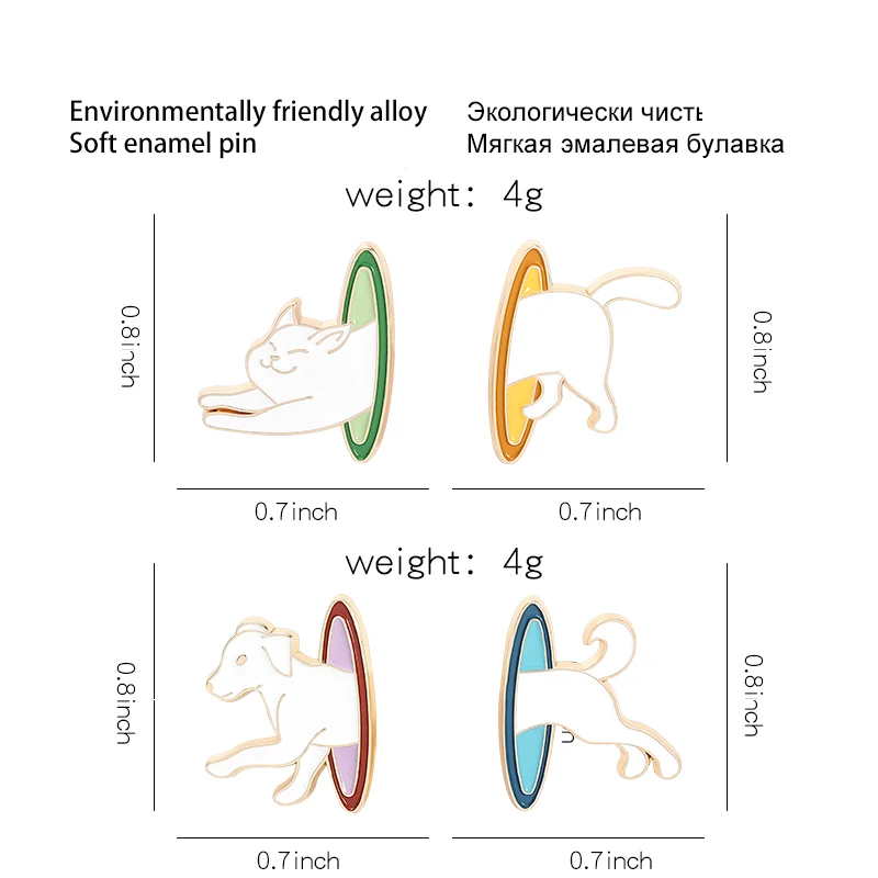 Эмалированная брошь в виде собаки, разноцветная брошь в виде животного, прыгает в круг, брошь в виде котенка, аксессуар для ювелирных изделий, бейджи с котом